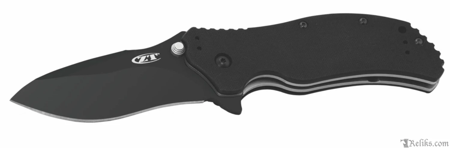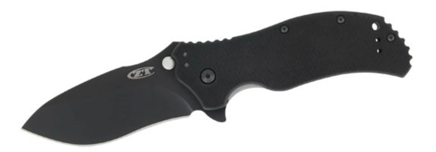 In response to customer requests, ZT is proud to introduce the new G-10 Folder. It’s slightly smaller and slightly lighter than the All Black Folder-10% to be precise-but just as aggressive. The G-10 is fully equipped with SpeedSafe® for one-handed assisted opening. Even in combat gloves, you can easily deploy the blade using the large, ambidextrous thumb stud or blade protrusion. The blade is S30V stainless steel with Tungsten DLC (Diamond Like Carbon) coating. S30V provides extreme durability, while the black Tungsten DLC is non-reflective, enhances hardness, and reduces friction drag. Textured, matte-black G-10 scales provide a secure grip. Includes a quad mounting system for tip-up, tip-down, left- or right-handed clip carry.