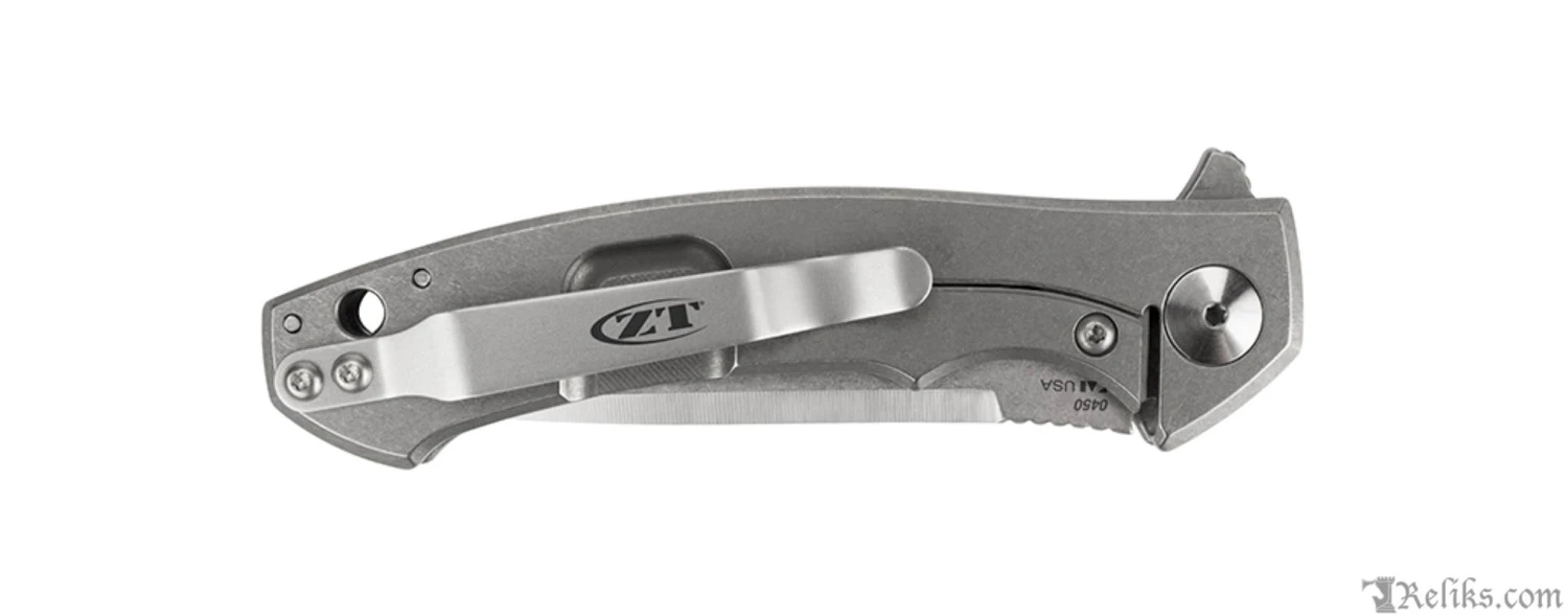 The original Zero Tolerance 0454 was an award-winning collaboration between ZT and custom knife designer Dmitry Sinkevich. But it was also a very Limited Edition knife. So ZT is doing something about that with the new 0450. While based on the originals streamlined form and high-performance function, this new and more compact version will be much more readily available. With its 3.25-inch blade and lightweight-yet-stronger-than-steel titanium handles, the 0450 has a sleek and sophisticated look that, we think, makes it a perfect EDC. ZT built it with an S35VN stainless blade that sharpens to a razor edge, holds it well, and can be resharpened easily. The knife opens smoothly and easily with the KVT ball-bearing opening system and built-in flipper. A titanium frame lock with hardened steel lockbar insert ensures solid lock up. Polished pivot hardware just adds to the 0450’s refined good looks.