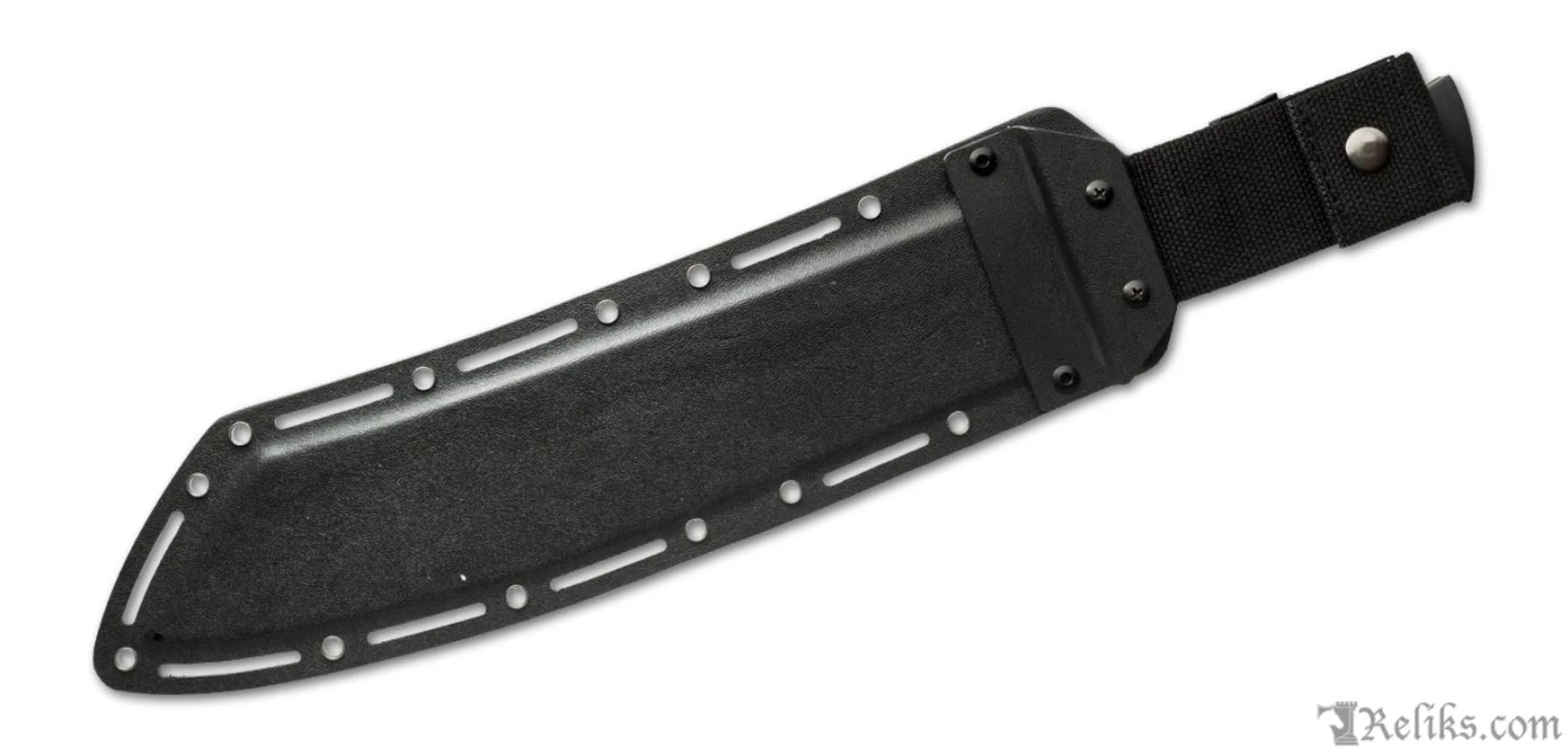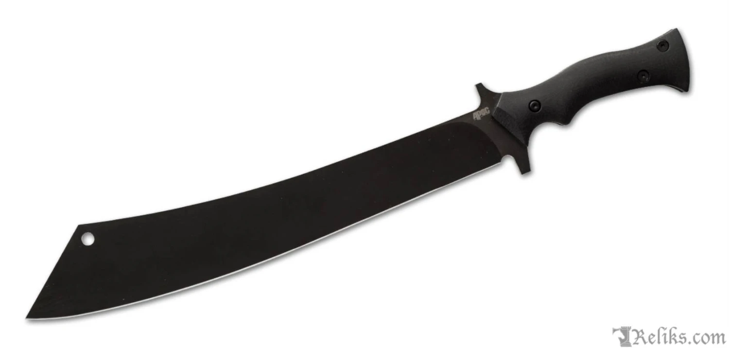 The barbeque is over, and the landscape is laid waste in nuclear fire. Foraging in vegetation and harvesting wildlife are scarce. Your provisions are few because normalcy bias left you unprepared. Your stomach pangs are as sharp as the knife sheathed on your pack. You draw your APOC Chop House knife and stalk the only prey you can find. The 12 ¾” Dao shaped blade longs to perform our designed function: chopping. At 5.5mm thick this black anodized coated blade gives as much as it can take. The full tang 4 5/8” contoured handle grips comfortably and securely with the milled G10 slabs. At 18” overall length and 1 lbs. 4oz the APOC Chop House knife butchers your target and not your fortitude. You draw your knife silently from your Kydex, Molle compatible sheath approaching your two legged prey while thinking .. looks like meat is back on the menu boys.