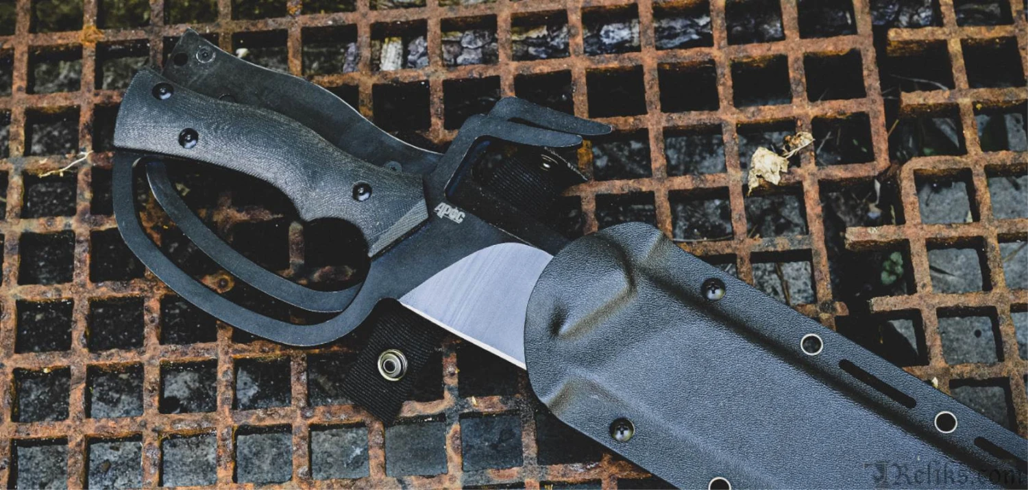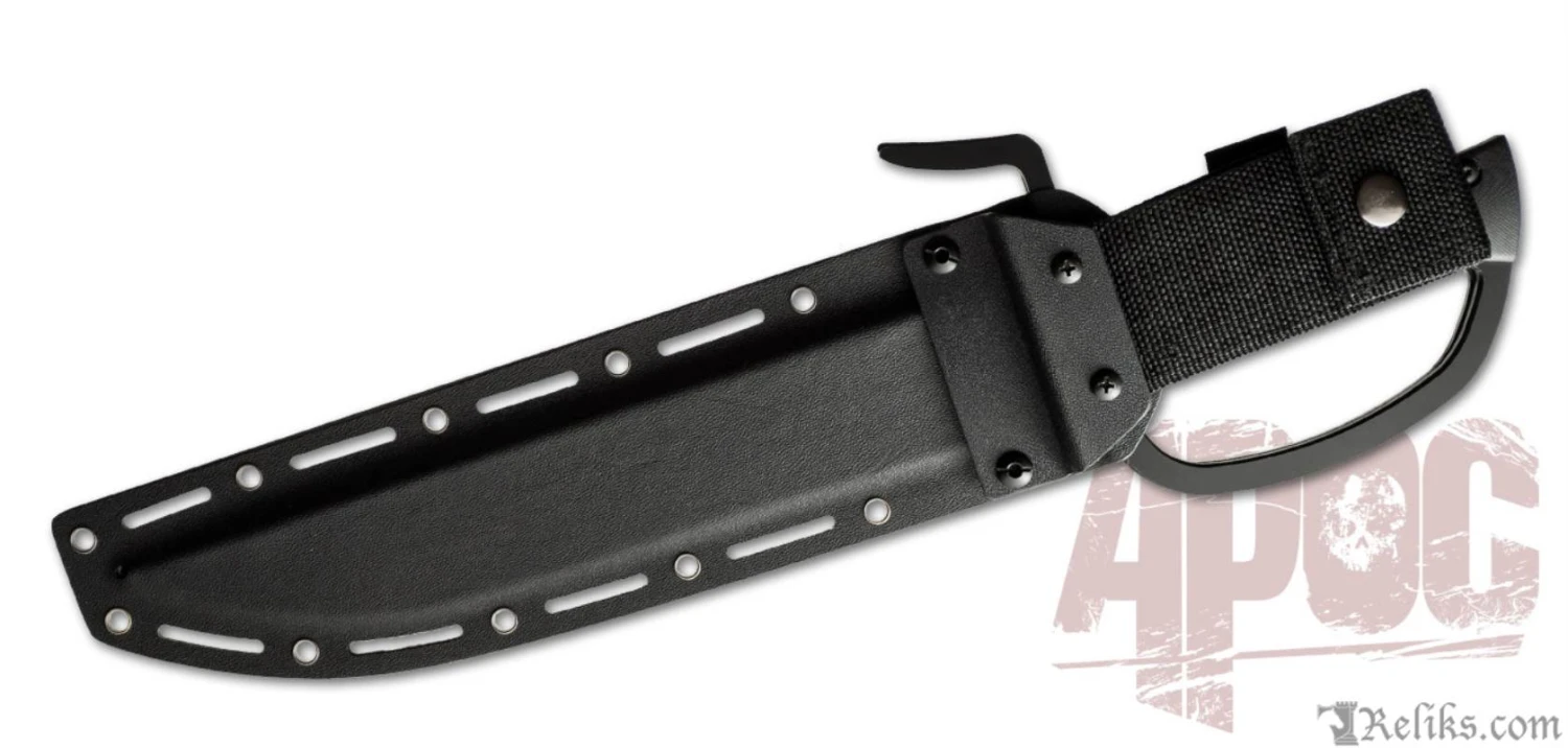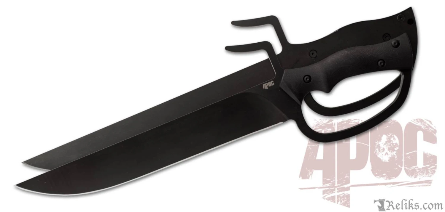 It’s a monastic life living on the wasteland after apocalypse for a lone survivor. With limited food and little conversation or hope, all that you have on your person or in your hands is all that you need to make it another day. But on that occasion when you’re tag teamed by a couple of ruffians, its good have a surprise of your own. Our APOC Butterfly Swords give you that advantage in both hands for defense and offense. With a single draw from your Molle compatible Kydex sheath, these mirrored twin 9260 steel blades spring to life to deal out doom to your would-be attackers. The 10 5/8” black coated blade features a zero rake in the “a la Moy Yat” blade profile style. The milled G-10 handle slabs are comfortable in the hand with black coated guard protects your fingers. At 2 lbs 5 oz these Butterfly Swords are hefty enough to do some serious damage but light enough to keep you dexterous and lethal.