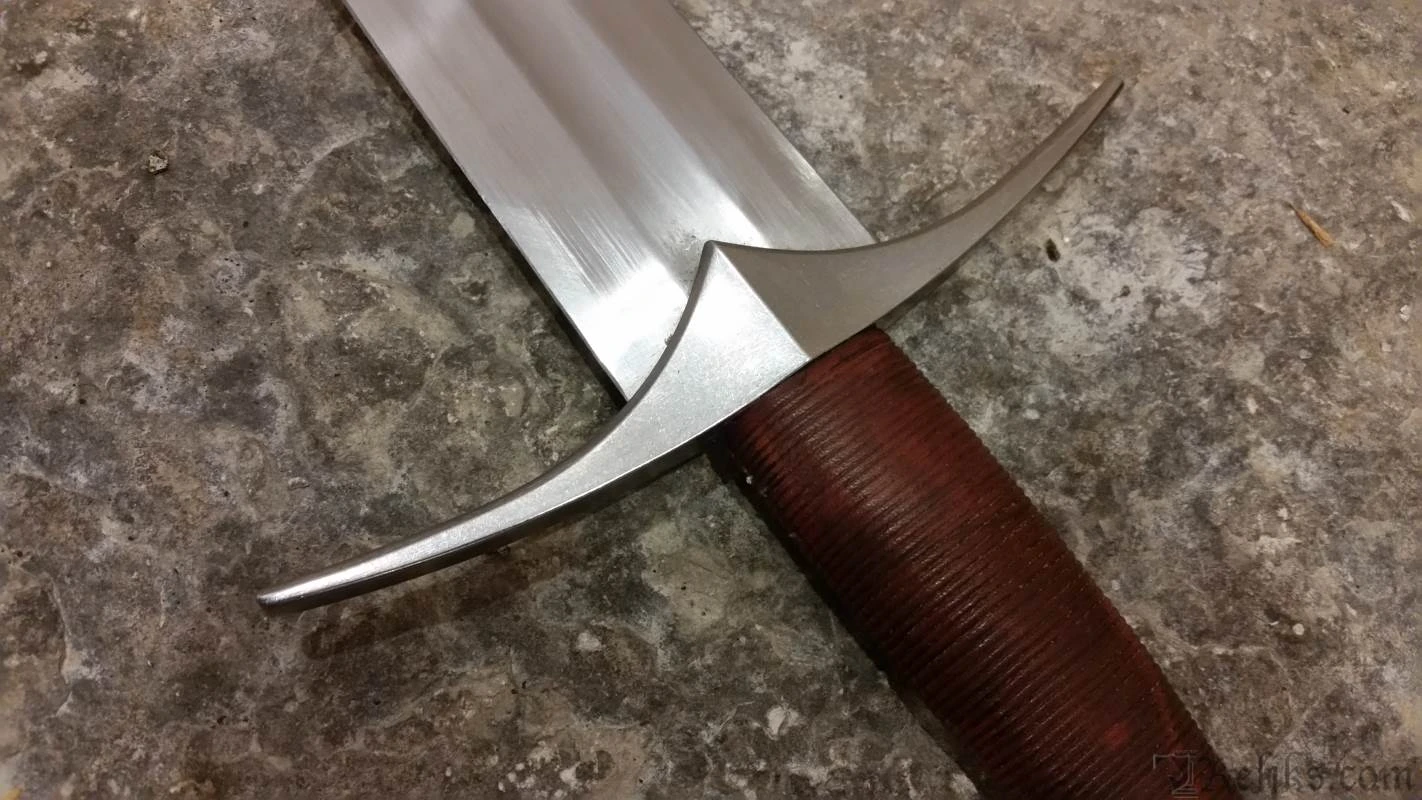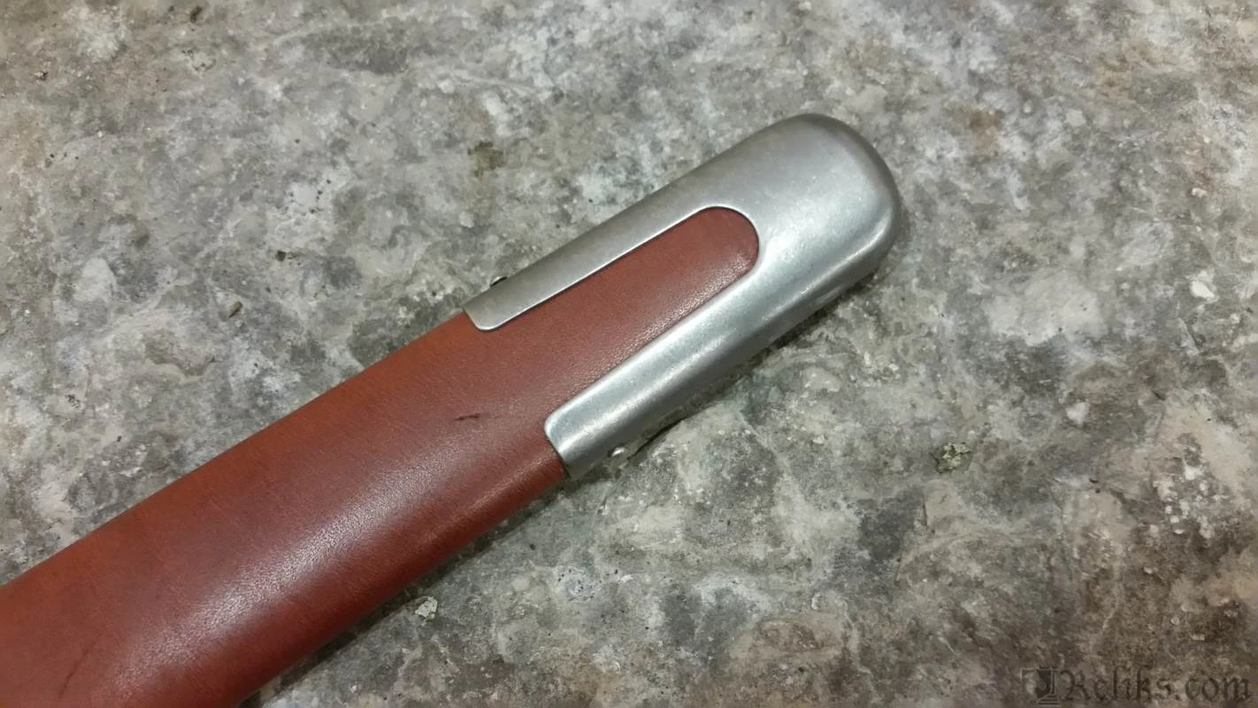 We spent a lot of time discussing with Gus his methodology for developing what he would call a “performance-oriented” sword. Without getting too deep into it Gus, along with Tinker Pearce, was one of the pioneering sword makers to incorporate the notion of harmonic balance into his sword designs. Informed by historical examples and his own experimentation Gus has been making swords for decades now that seem to float in your hand. For this sword Gus left the aesthetics and materials up to us, it was the design (weight, balance, taper, harmonics) we had to get right. It took several rounds of samples (not to mention a botched first run) but we finally nailed it. Not satisfied with just getting the design right we wanted to push it farther. We had the fundamentals down but chose to take the materials and fit and finish a step ahead. The blade is hand forged mono-tempered 9260 spring steel, flat ground with a handsome satin finish. The fittings are high quality stainless steel exactly matching Gus’s design. The grip is a solid wood core, cord-wrapped for strength with a textured leather over-wrap. The scabbard is a solid wood core, with stainless steel chape and stitched leather wrap. Bottom line, these are the best performing production medieval swords available.