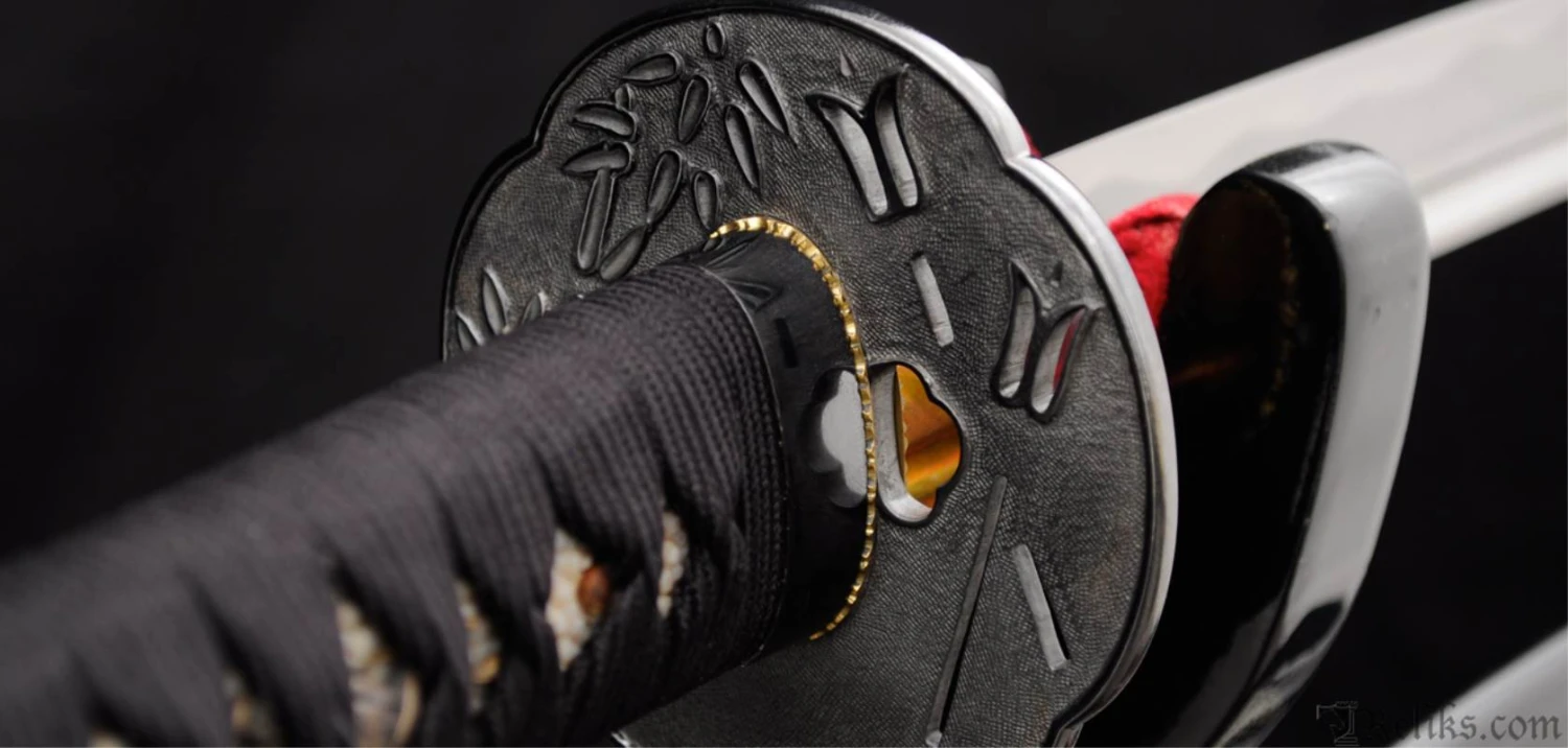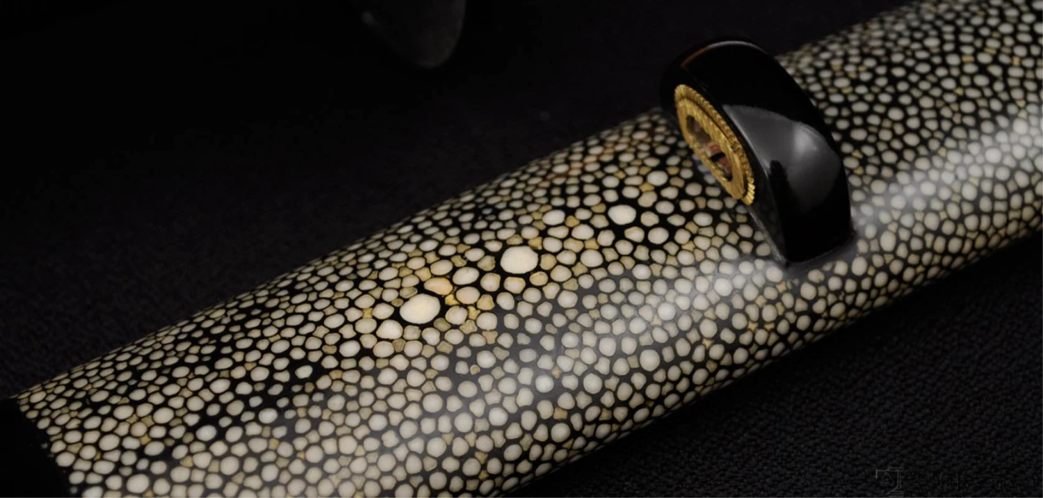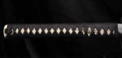 The tsuba is hand cut and engraved from pure iron. The “nanako” or stippled pattern on the tsuba is accomplished by hand, quite a feat of patience with a stunning result. The tsuba also features “seki-gane”, metal inserts at the top and bottom of the hole for the blade to slip through. These are of a softer metal (copper) than the iron of the tsuba and allow easier shaping of the hole to perfectly fit the tsuba to the blade. Over time if this fit becomes loose or the tsuba is fitted to another blade the seki-gane may be adjusted easily to tighten it back up. This is a small detail usually only found on hand-made Japanese tsuba and is indicative of the level of care and craftsmanship given to these swords by Citadel. The “tsuka” or handle and “saya” or scabbard are hand carved to fit each individual blade ensuring a proper fit. The handle is wrapped in genuine imported silk from Japan and tightly wrapped around the full same-gawa or ray skin wrap around the wooden core. The saya is lacquered in black to a nice semi-gloss finish with a ray skin wrap near the mouth of the saya to strengthen this area. In hand this sword feels as if it is a natural extension to your arm, a truly exceptional experience.