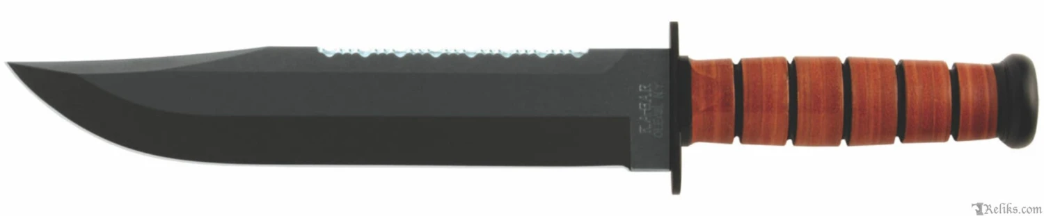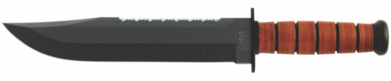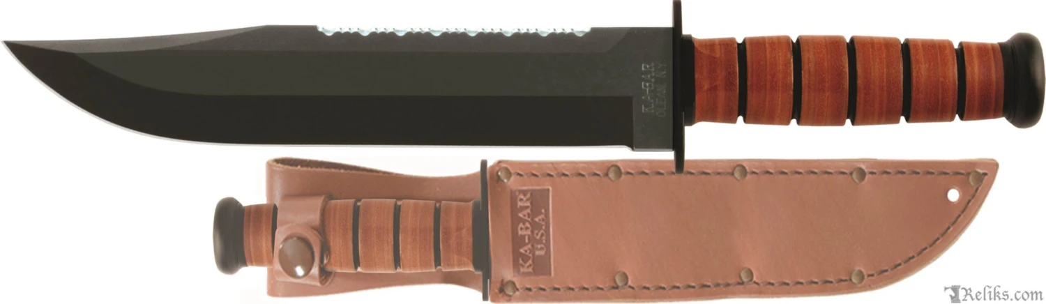 During WWII a legend was born, as several companies were asked by the U.S. Government to help supply troops with combat/utility knives. KA-BAR stepped up to the challenge and their reputation became so strong that all who are familiar with this knife refer to its kind simply as the “KA-BAR.” The world’s most famous fixed-blade knife is still doing its job, with honors, almost 70 years later. The newest addition to this always impressive line is the Big Brother which is designed for a lifetime of hard work and constant use. The Big Brother features an epoxy powder coated high carbon steel 9 3/8″ blade with a serrated top edge and a stacked leather handle. 14 3/8″ overall.