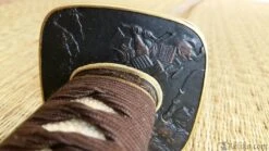 Bushido, or “Way of the Warrior”, defines the code of conduct an honorable Samurai must follow and the Hanwei Bushido katana is designed to perpetuate this tradition. The blade of the Bushido katana is hand-forged and folded from K120C powder steel, with a medium-length (chu) kissaki. The saya is deeply lacquered with inlaid brass cherry blossom (sakura) flowers. High quality ray skin (same) is used on the tsuka. The tsuba is crafted in blackened and bronzed iron, with detailing in gold and silver and a battle scene decoration. The tsuka-ito and the sageo are woven from premium Japanese cotton. The fuchi and kashira are of blackened bronze with brass detailing, and the kojiri, koiguchi and kurikata are of polished buffalo horn. The habaki is a one-piece brass construction. This functional sword has been traditionally constructed by Hanwei under direction of Paul Chen. This sword comes pre-sharpened for the martial artist and tameshigiri cutting.