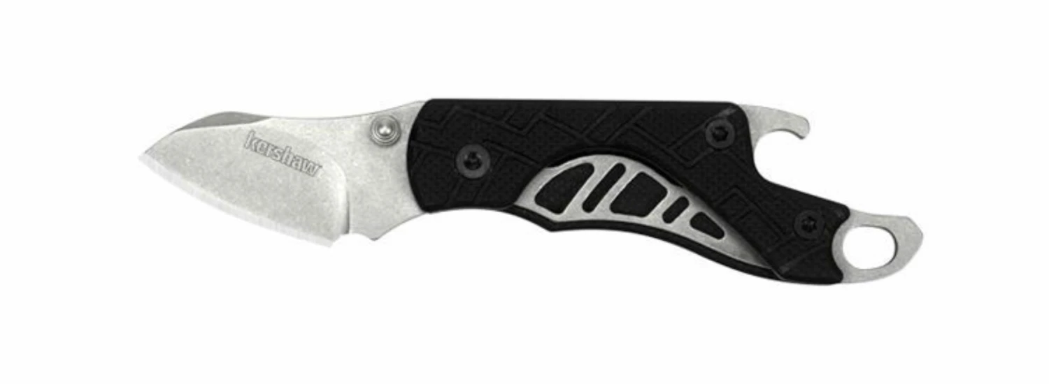 The Cinder is small enough to attach to your keychain, yet its still capable of doing most of the tasks you carry a knife for. From opening packages to breaking down boxes, the Cinders got you covered. Whats more, you know the Cinder is built for performance. For one thing, its designed by Rick Hinderer, well known for the real-world practicality of his knife designs. For another, its precision manufactured by Kershaw, known for our top-notch fit and finish. The blade is just 1.4 inches long, but because of the upswept tip, it offers plenty of useful cutting edge. On a knife this small, creating a solid grip is tough. Rick designed the grip so that your hand comes forward past the pivot point, enabling a full three-finger grip on this smaller knife. The handle is textured glass-filled nylon to enhance grip even more; the blade has a stonewashed finish that looks great and hides scratches. The secure locking liner features cutout embellishments revealed by the design of the handle scale. This design also makes it easier to open this manual-opening blade and easier to unlock the liner lock to close it. The large lanyard hole makes attaching the Cinder to your key chain or pack simple. And you might have noticed the bottle opener built into the back end. Yeah, we thought you did. Its plenty sturdy and ready to go to work when you are.