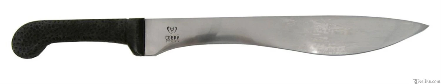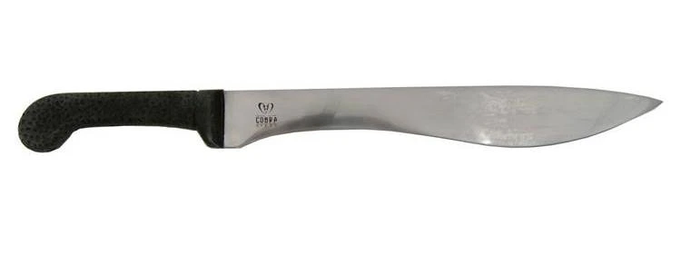 True all purpose function for the real outdoorsman, this Windlass Cobra Falcata survival knife features a hand-forged, X46Cr13 high grade stainless steel blade. Fully tempered in state-of-the-art computer controlled oven to a Rockwell hardness of 48°, it will flex in a cut and come back for more – the way a knife should be. Nothing fancy, just tried and true function. Features a weather resistant, rubber handle giving great one hand performance while absorbing shock. The grip is purposefully longer than most machetes for a second hand hold when extra chopping power is needed. The falcata design is one of the best chopping designs in history and our tactical Cobra Steel echoed here is no different. Experience the difference a Cobra can make! Comes with a razor sharp edge and includes riveted leather belt sheath.