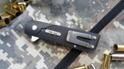 If you are a big fan of the 1911 semi auto pistol like we are, we think you might also enjoy carrying our light handy 1911 liner lock folder as an everyday side kick! Designed to emulate the 1911s iconic grip frame, its lightning quick to draw and open thanks to its integral “flipper” and once deployed its super sharp, clip point blade can be made extra safe by engaging its patented secondary safety mechanism. Supplied with a classically checkered Griv Ex handle and ambidextrous stainless steel pocket clip its very reasonably priced and sure to be your new favourite 1911!