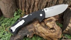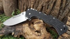 The original 4 Max knife proved to be all that we hoped for. But it was expensive and difficult to manufacture and deliver in a timely manner to meet customer demand. The 4 Max Scout is easier to produce and is a far more affordable alternative. It features an extra wide, drop point blade and stone wash finish, which is identical to the original 4 Max. Its crafted from 5mm thick AUS 10A steel, for strength, toughness and edge holding potential. The handles silhouette mirrors the original. Instead of a G-10 handle the 4 Max Scout has one made of Griv-Ex with stainless steel liners and a Griv-Ex back spacer. Equipped with Andrew Demkos ground breaking Tri-Ad® locking mechanism the 4 Max Scout has passed every one of our grueling shock and impact tests and then gone on to hold 600 lbs. of free hanging weight with no damage!
