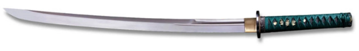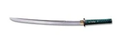 The classic Japanese battle sword in all its incarnations has been celebrated for centuries, not only for its elegant lines and simple beauty, but also for the technique and skill that went into its construction. Most swords offered today are interpretive copies of antiquities from feudal Japan. They were made for warriors of small stature who seldom rose above five and a half feet. As skillfully designed as these swords are, they may not be perfectly suited for the twenty first century warrior, who benefited from contemporary advances in childhood nutrition and healthcare and grew up to be a substantially taller, stronger, and more athletic version of his historical counterpart. As a way of compensating for this size disparity, Cold Steel has created the Dragonfly Series. These swords feature thicker, wider and heavier blades, which mirror our Emperor Series in respect to heat treatment, polish, quality of furnishings, and attention to detail, but with a few new departures. Most noticeable are the distinctive teal-green silk cord-wrap and black samé (ray skin) used on the handles and the black iron furniture that bears the dragonfly motif. Also, the polished blades are more strongly curved than our Emperor blades and terminate in a long “iris leaf” point for maximum cutting and slashing potential.