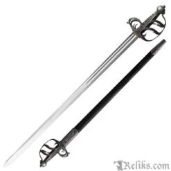 We are proud to add our interpretation of a 17th Century English Mortuary Hilt Sword. Inspired by historical examples, this nimble single-handed sword is fast and lively in the hand and a sheer delight to train with. Able to land a decisive blow even when cutting fast from the wrist, this beautiful sword has already proven to be very popular among our crew, who have proclaimed it to be one of their favorite one handed cutters. Made from 1055 Carbon Steel and supplied with a mild patina to give an antiqued finish, each English Backsword is fully sharpened and supplied complete with an ornate leather and steel scabbard. An excellent addition to the collection of any Historical European Martial Artist or Historical Re-enactor.