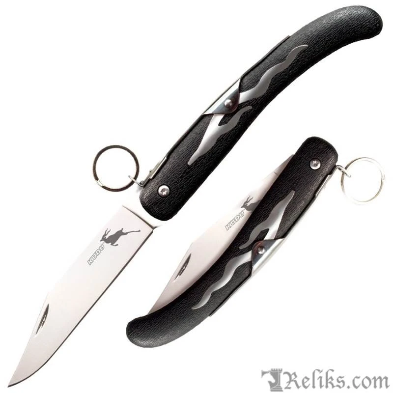 The Cold Steel Kudu takes its inspiration from the classic ring lock folding knives of Africa. These highly functional blades are owned and carried by people from every walk of life, and are the everyday tool of choice for almost every conceivable task. They have stood the test of time, and have been in-use continuously for centuries – and with good reason – they work! Our Kudu features a highly rust resistant and beautifully mirror polished stainless steel blade that is expertly heat treated to offer an excellent balance between edge holding and ease of re-sharpening. The handle is made from durable glass-reinforced Zy-Ex and has an attractive wood grain texture and polished silver embellishments.The Kudu is amazingly lightweight, versatile and functional, and affordable on almost any budget.