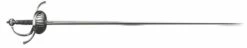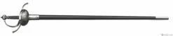 According to most historians the Rapier first appeared on the sword scene in the late 14th century and held sway in most of Europe until the late 16th century except in Spain where it endured clear into the 18th century. The reason for its long reign as the civilian weapon of choice for self-defense and dueling can be tied to its two major advantages. First its long, slim, double edged blade was ideal for delivering point oriented blows at a great distance while still being able to deliver a stinging cut. And secondly, its continually evolving hilt of rings, bars, quillons, shells, and eventually, an intricately chiseled cup offered excellent protection (especially now that the armored gauntlet had been abandoned) and shed, caught or deflected blows at the sword hand and forearm with great aplomb. Sadly, while never proven ineffective or obsolete, the rapier eventually succumbed to the dictates of fashion and gave way to the emerging small sword. Happily Cold Steel has chosen to revive the Rapier with our own interpretation designed by Dave Baker. The long, narrow blade is combat sharp and beautifully polished with a single wide fuller at the forte to assure perfect balance. The hilt also reflects the best in craftsmanship and materials fashioned from stainless steel featuring a classic ribbed shell and multiple bars, quillons and knuckle bow for unparalleled hard protection. The grip itself is made of wood covered with rich black ray skin and decorative wire and terminates in a heavy ribbed pommel that serves as a counter balance to our Rapier’s long blade.