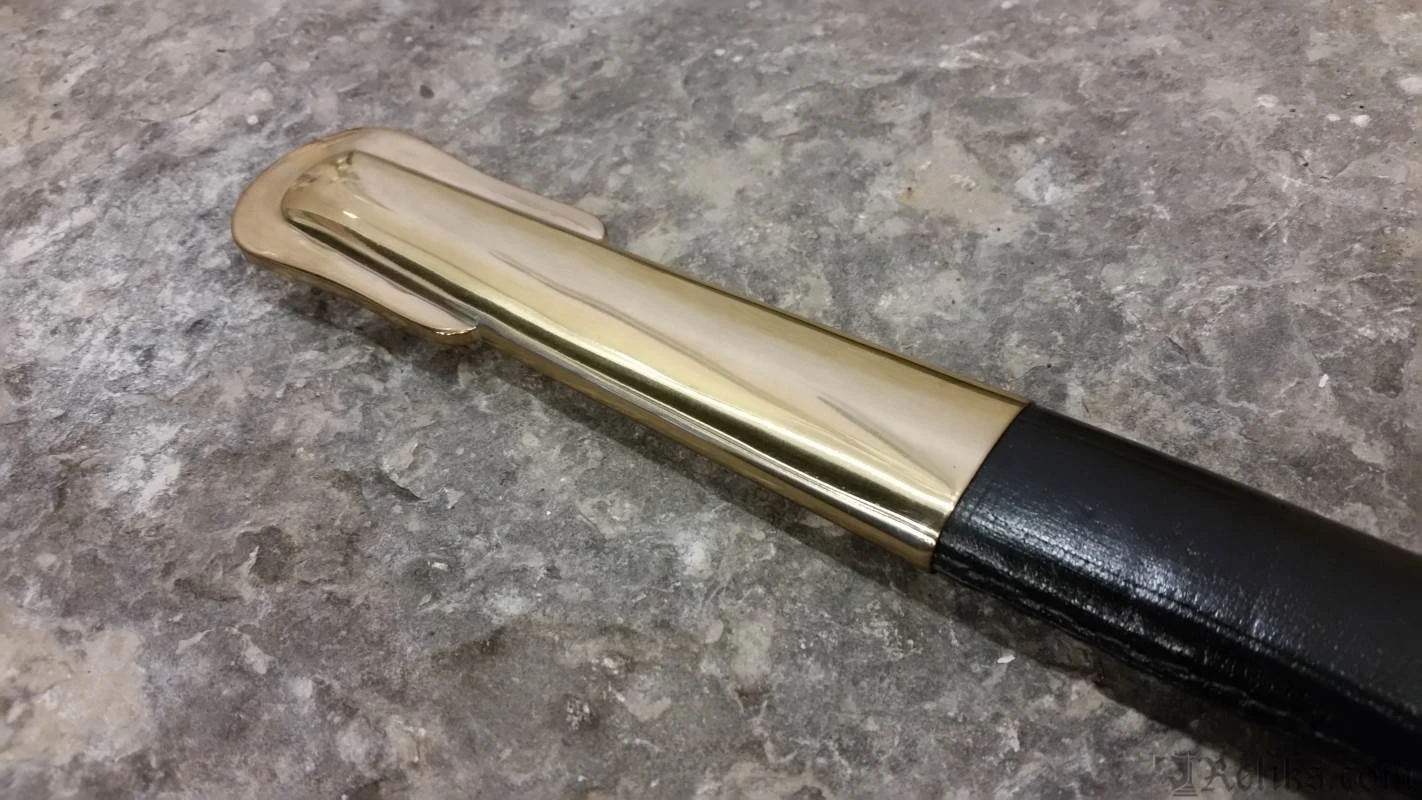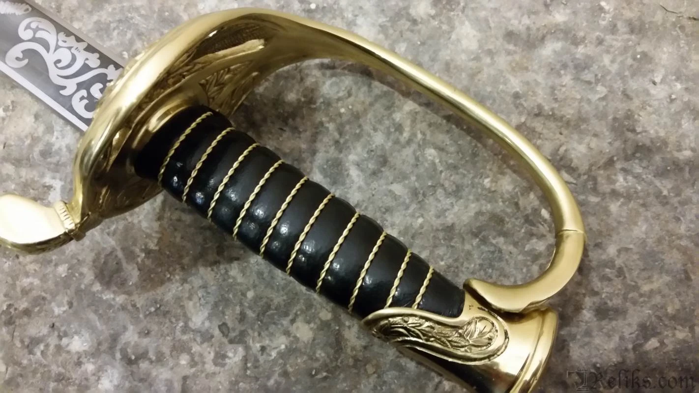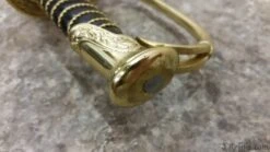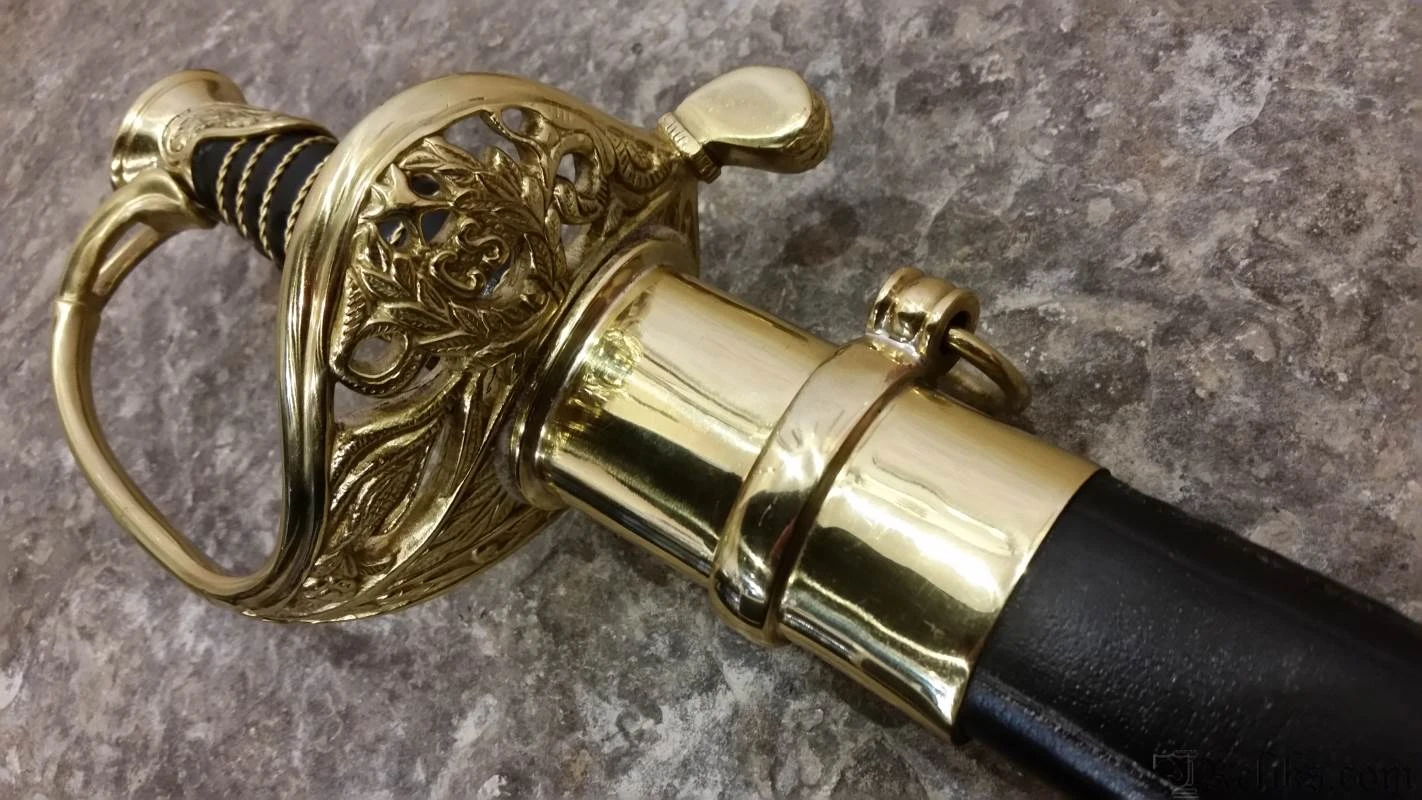 This authentic, hand made replica is hand forged and fully tempered of 1065 high carbon steel. Coupled with original handle and sheath materials to ensure it performs exactly as the originals did. Flexible, ornate blade and leather grip wrapped with brass wire. This faithful reproduction of the Boyle, Gamble and McFee sword is a beauty! The blade etching is even more detailed than on the old ones, with the heroic “C.S.A.”, cannon and battle flag all well done. The brass fittings are beautifully hand finished with precise detail. Note the five pointed star and “CS” on the knuckle bow. Top grain leather scabbard. See Albaugh’s “Confederate Edged Weapons”, pg. 9.