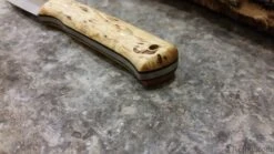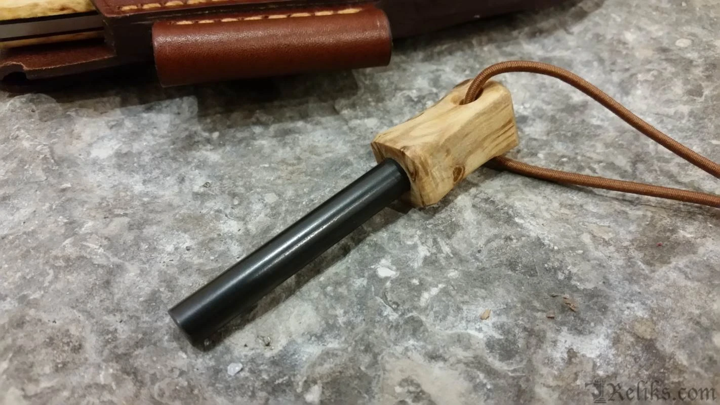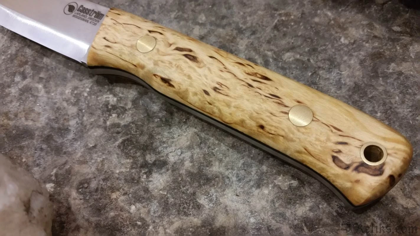 The blade is made of around 4mm thick Sleipner steel to make the blade extremely durable for heavy use such as log-splitting, or so-called “batoning” without making the knife to heavy or uncomfortable to carry.
