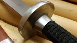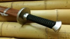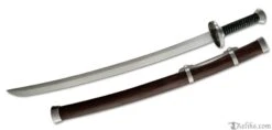 Designed by noted martial artist and teacher Scott M. Rodell, Hanwei’s Chinese Cutting Sword provides a purpose-built weapon for the art of cutting in Chinese Swordsmanship. Utilizing a special steel formulation and heat treatment regimen developed by Hanwei, the blade optimizes edge hardness and body toughness, ideal characteristics in a cutting sword. The elegantly simple steel fittings reinforce the sword’s mission, providing uncluttered lines while still remaining true to tradition. The black leather-over-cranberry rayskin grip ensures secure handling. A rosewood scabbard with fittings matching the hilt completes an attractive package.