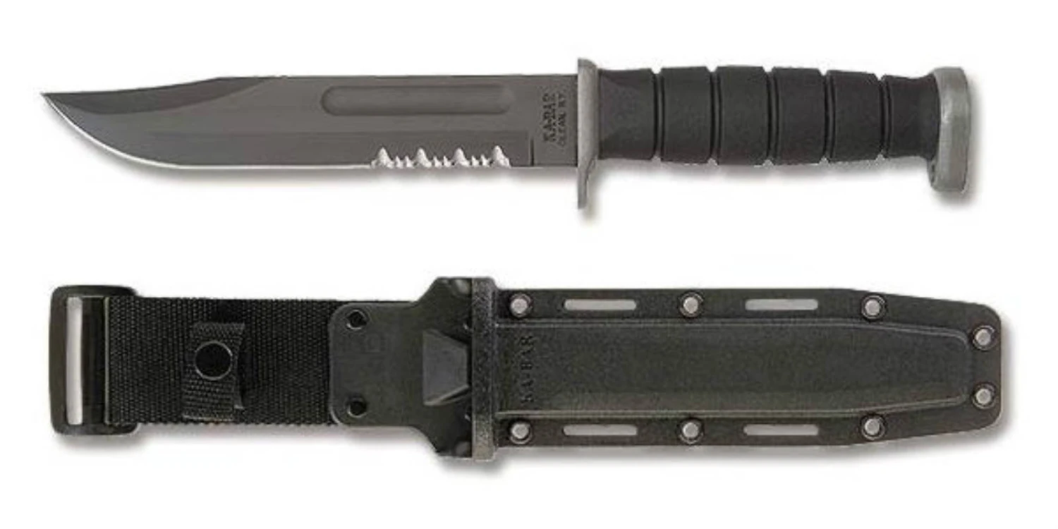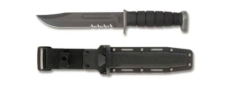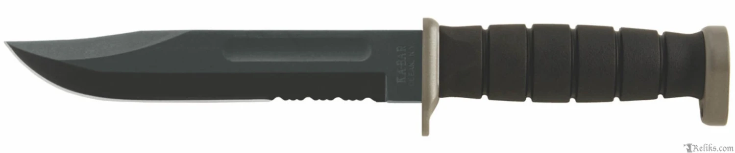 Cutting tests prove that the D2 is one of the toughest steels used in knife making. Featured here in the classic clip point blade shape that made KA-BAR famous. D2 Steel with a Rockwell Hardness of 59-60. Handle is constructed of Kraton G. Includes hard plastic sheath.