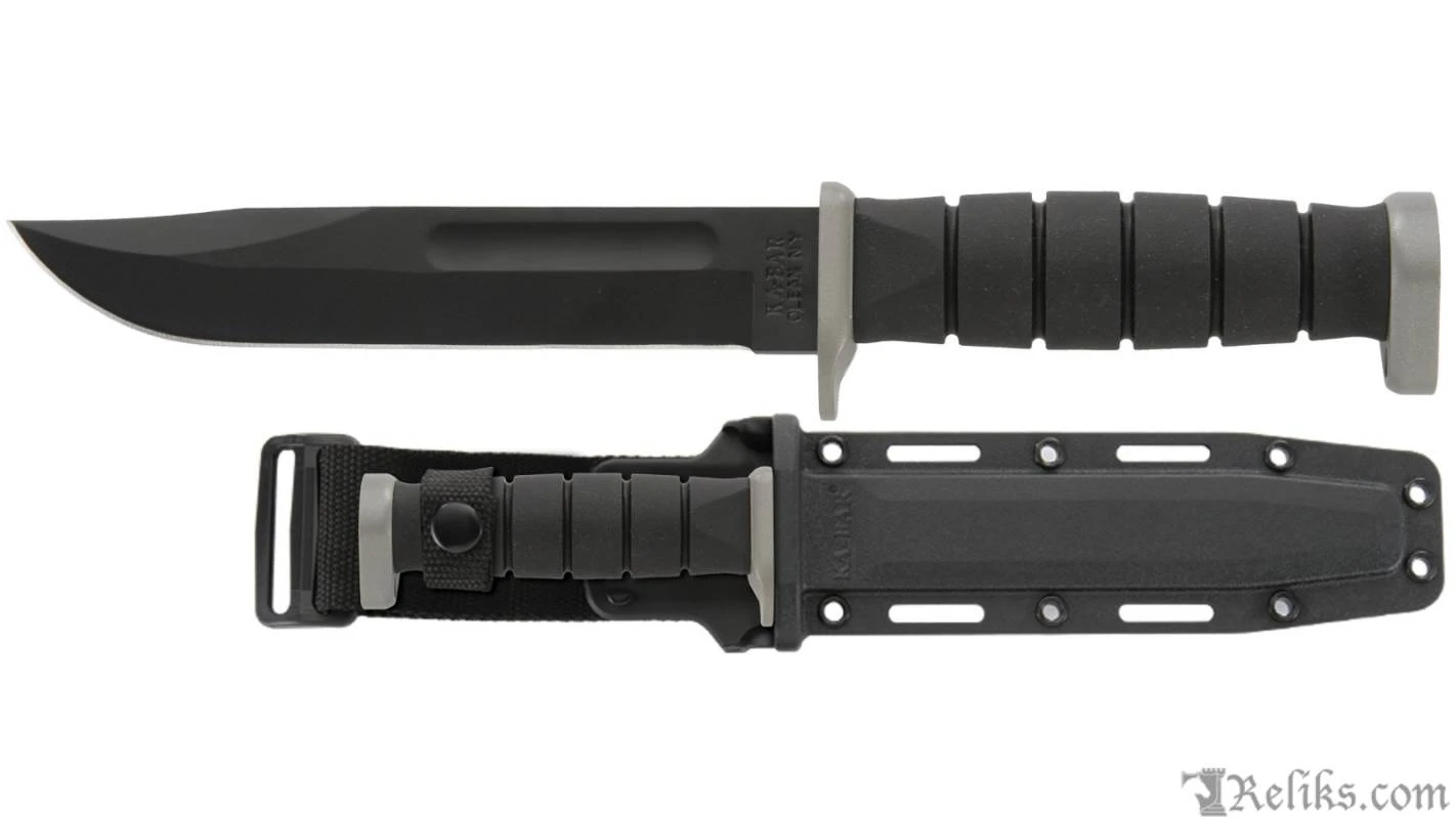 Ask and you shall receive! We heard your requests for our D2 Extreme with a straight edge and are happy to oblige. Made in Olean, NY with D2 Tool Steel, a steel known for its toughness. Cutting tests prove that the D2 is one of the toughest steels used in knife making. Featured here in the classic clip point blade shape that made KA-BAR famous. D2 Steel with a Rockwell Hardness of 59-60. Handle is constructed of Kraton G. Includes hard plastic sheath.