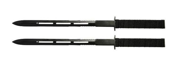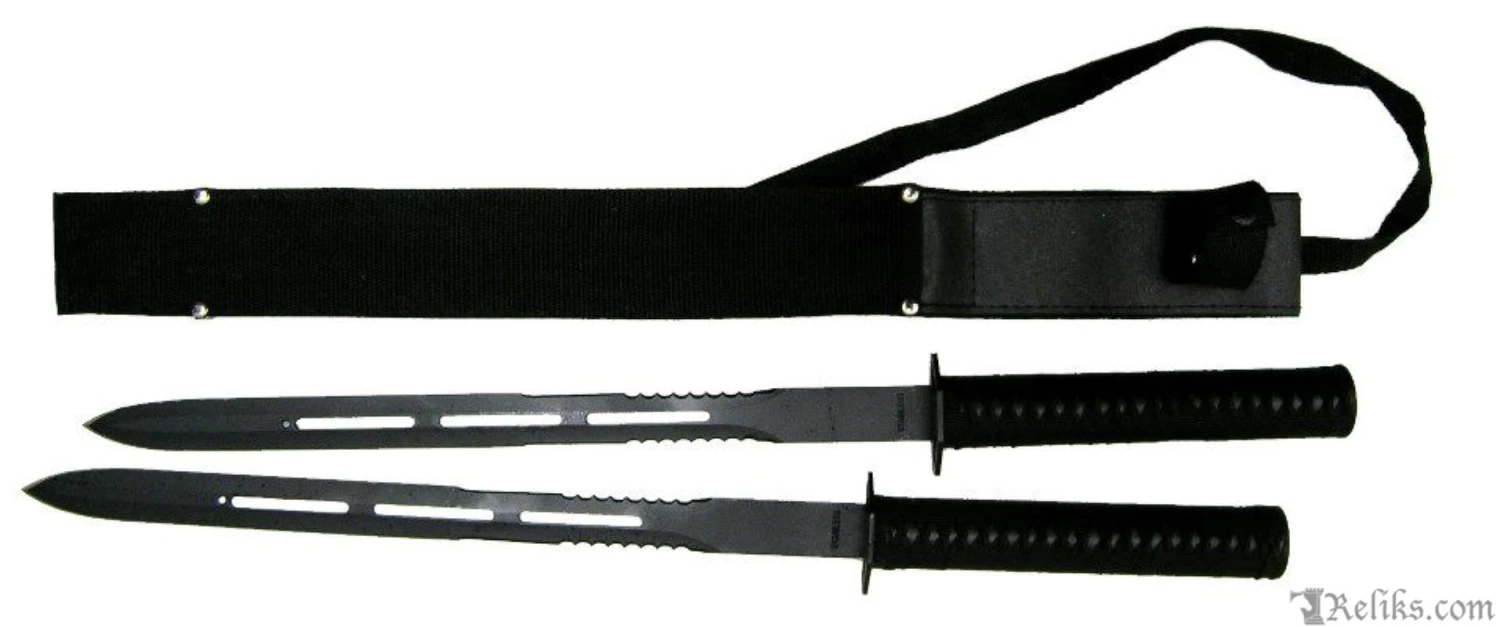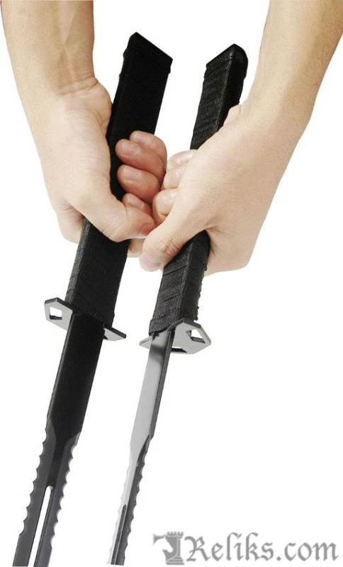 The Ninja. They lived in the mountainous regions of Iga and Koga and trained in the art of stealth. It is said that their art is based upon a great Chinese military text (The Art of War) written by a general named Sun Tzu. Over the centuries the Ninja trained from childhood in every known Martial Art. Games were designed to inculcate expertise in unarmed combat, sword work, weaponry, camouflage, escape and evasion. In time, the Ninja warriors came to be feared throughout Japan. Many Ninja used their skills for the benefit of their people and to stop injustice throughout the land. Overall length of 23 1/2″.