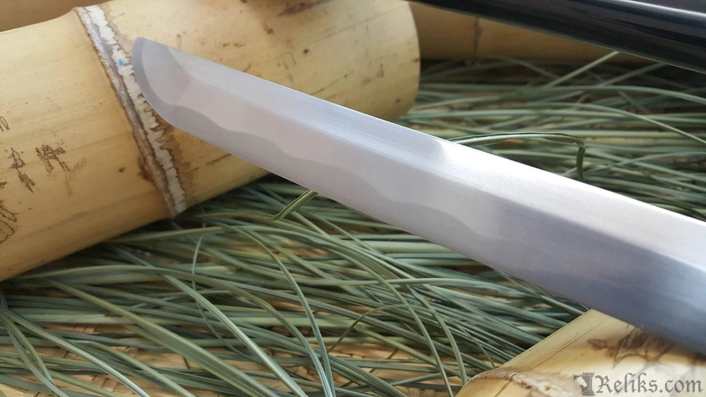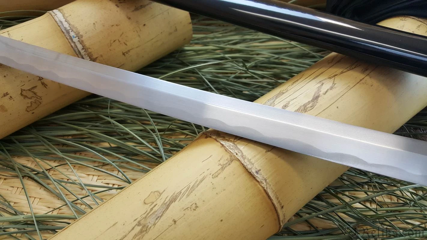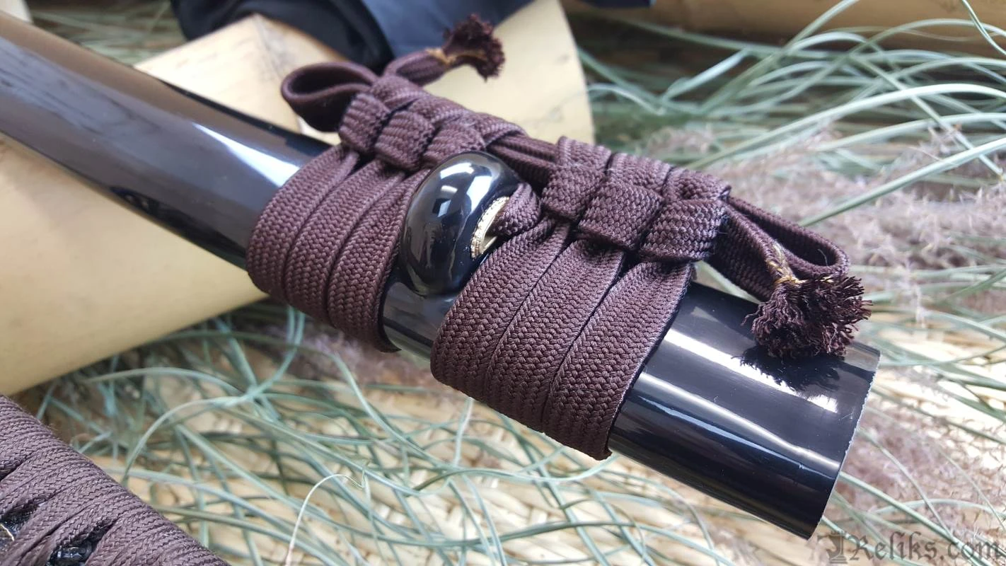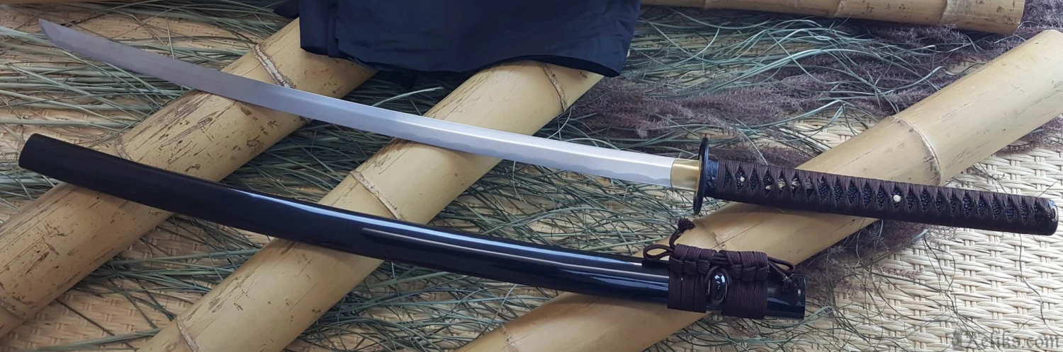 The Dragonfly koshirae katana has a distinctive style, a thinner lighter blade individually hand forged and folded from the superior Swedish Powdered Steel and very affordable. Our work with Hanwei continues to produce swords of the highest quality, the best value for the money. All of Bugei swords are tested extensively before they are put into production. We make sure that our swords perform as good as they look. The Dragonfly held a special significance to the Samurai. Their seemingly tireless movement reflected the Samurais desire to give tireless service to his feudal Lord. The dark brown ito is set off by the black same making this a unique offering from Bugei. The lower shinogi and the scant hira-niku make this blade lighter and faster and gives it less resistance in cutting soft targets. The tsuka has the slight “waisting”, ryugo, that is popular with many who study Japanese sword arts. The fittings are beautifully antiqued duplicating the look of old iron. Ted Tenold is responsible for the design and authenticity of these fittings and we think that they are the best that Bugei have offered.