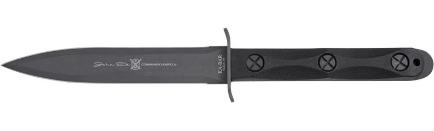 KA-BAR is excited to introduce it’s first and much anticipated John Ek Commando Knife Co. product, the Ek Model 4. This updated version of the old jungle fighting knife is made from 1095 Cro-Van and features a parkerized double-edged blade, textured glass-filled nylon handles and traditional X-head fasteners. A US-made Celcon® sheath with retaining strap, self-locking function and multiple tie-down points is also included. Made in the USA.