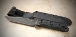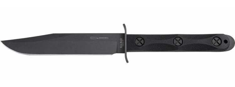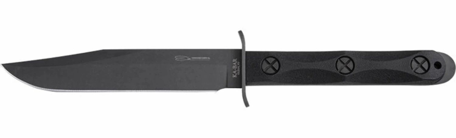 KA-BAR’s third introduction into the John Ek Commando Knife Co. product line is the highly anticipated Model 5. This updated version of the occupational fighting knife with hilt is made from 1095 Cro-Van and features a parkerized bowie blade, textured glass-filled nylon handles and traditional X-head fasteners. A US-made Celcon® sheath with retaining strap, self-locking function and multiple tie-down points is also included. Made in the USA.