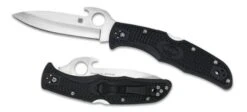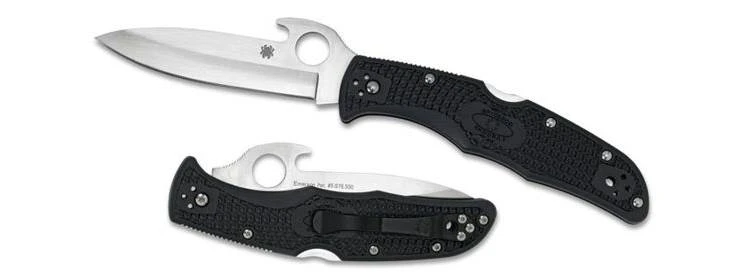 If knives could be created in the same way we choose players for fantasy football league teams, every hardcore knife knut would recruit features and characteristics they like best from different knife companies and combine them into their favorite knife. Spyderco will undoubtedly fulfill many knife knuts knife fantasy picks with the introduction of the Endura with Emerson’s opening feature. These models combine all that’s functional and performance-based in a Spyderco folder with the blade-opening feature made popular and patented by Ernest Emerson of Emerson Knives. The Emerson opening feature is a hook curving out the top of the knife’s blade. When removing the knife from a front pocket it catches the pocket’s edge quickly opening the knife blade ready to use. The knife can also be taken out of the pocket without engaging the opening feature by pulling it straight up and out with your fingers on top of the closed blade. Enduras with Emerson’s opening feature have screw construction making cleaning and adjusting easier. Their blue-gray fiberglass reinforced nylon handles are molded with Bi-Directional Texturing® for traction and improved ergonomics. Inside the handle dual skeletonized stainless steel liners strengthen the knife without additional weight and create an anchor for external and internal components to attach through for more sturdiness and rigidity. Their VG-10 blades are flat saber-ground with a stronger tip and larger 13mm opening hole. Added to the blade’s spine is slip resistant jimping. Phosphor bronze washers smooth out the open/close action and the clip is upgraded to a four-way tip-up, tip-down, left- or right-handed clip.