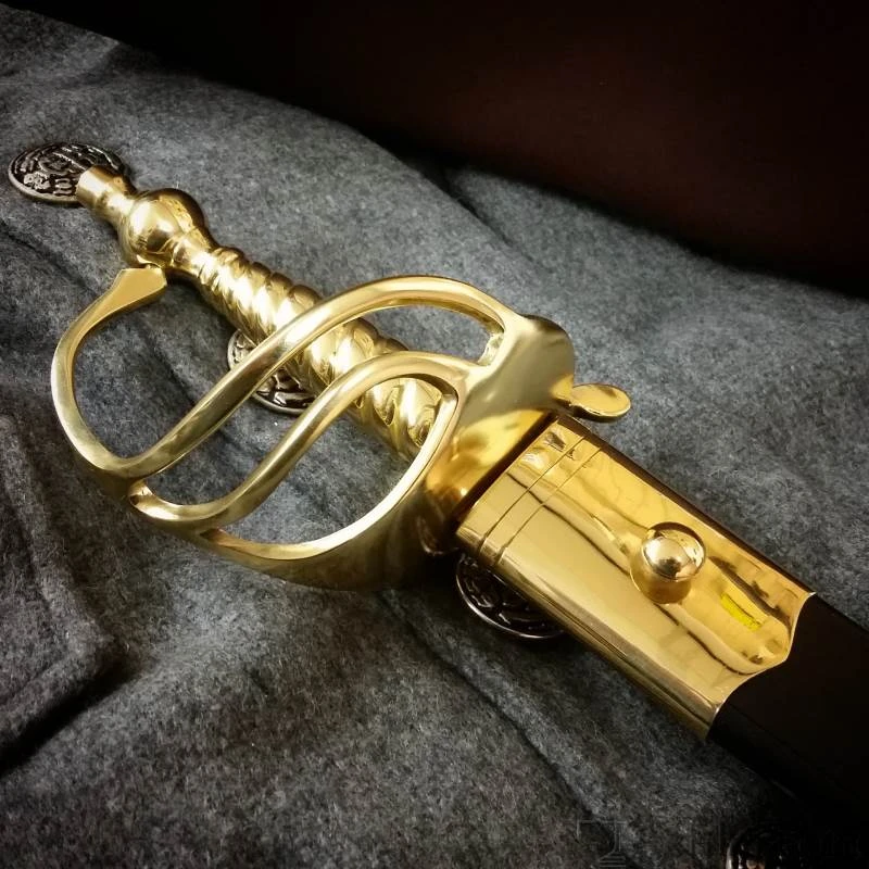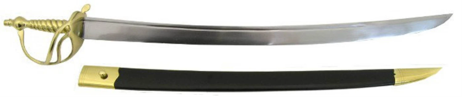 The cutlass, sword of the seas favoured by navy and pirates alike, was also used by some land infantry units but is best remembered as a sailor’s sword. The cutlass was a shorter sword frequently used by officers as a close quarters battle weapon and may be known by some as a cuttoe which is derived from the french “couteau”. It was also referred to as a “hanger” until the 1800’s, then adopted the name cutlass amongst sailors.