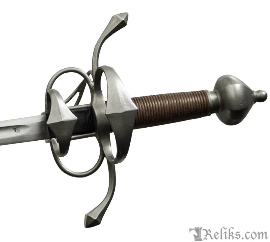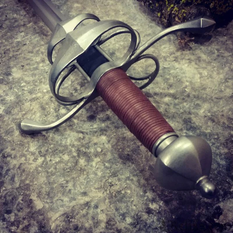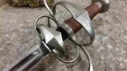 Designed for safe use in fencing practice, the Renaissance Side Sword provides a realistic fencing simulator to the renaissance period HEMA practitioner. Unique in the time of the primarily piercing oriented rapiers, the side sword kept the cut and thrust aspects of the late medieval arming swords and added the protection of a complex hilt hand guard. This side sword features thick well rounded edges and a rolled tip for greater thrusting safety. However with all fencing swords we suggest affixing a rubber tip blunt or piece of leather strip taped to the tip. This updated sword design provides a stiffer blade, a more robust hand guard and long lasting cord wrapped grip.