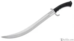 Continuing their tradition of bringing tried and true weapons into the tactical world, Honshu adds the Saber Sword to its Boshin line. The full-tang, 21” saber blade is a rock-solid but resilient 7Cr13 stainless steel that has thru-holes and a blood groove. The rugged TPR handle is heavily textured for a slip-free grip in any environment. A premium, reinforced leather belt sheath houses the 28” overall tactical saber sword.