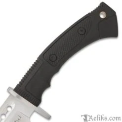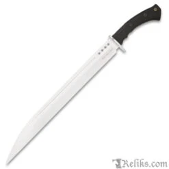 The Honshu Boshin Seax Knife is an exceptional addition to the Boshin line of tactical weapons, which blends tradition and innovation and style and function. The 19 3/8” blade has a rock-solid, full-tang 7Cr13 stainless steel construction and it features weight-reducing thru-holes and a fuller. The textured, ergonomically contoured TPR handle is secured to the tang with heavy-duty screws and the ridges provide a secure, no-slip grip. The seax knife is 25 3/4” in overall length and it comes housed in a premium, reinforced genuine leather belt sheath, which features a paracord lanyard for lashing. Like all the swords and knives in Honshus Boshin line, the Boshin Seax Knife sets a new standard for both quality and value.