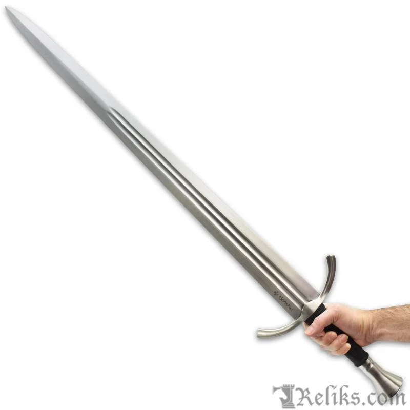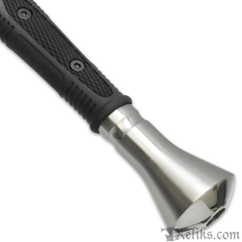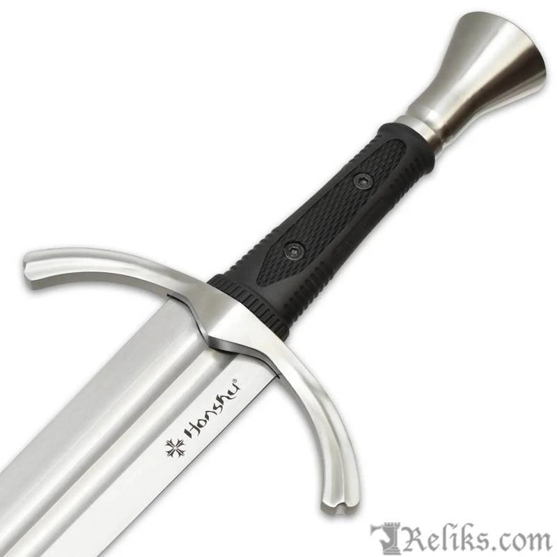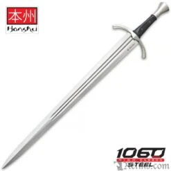 The Honshu Single-Handed Broadsword represents a modern spin on a proven, time-tested sword design with sleek, rugged tactical engineering and perfect blade-to-hilt balancing. It has a 30 3/8″, 1060 carbon steel blade with a satin finish, which extends from a cast 2Cr13 stainless steel handguard. The grippy handle is heavily textured, black TPR and it has a cast 2Cr13 stainless steel pommel with a satin finish. The 40″ overall broadsword slides smoothly into its semi-glossy, black wooden scabbard with metal accents. Honshu continues to expand its exceptional sword line and this sleek, tactical single-handed broadsword is a must-have for your collection!