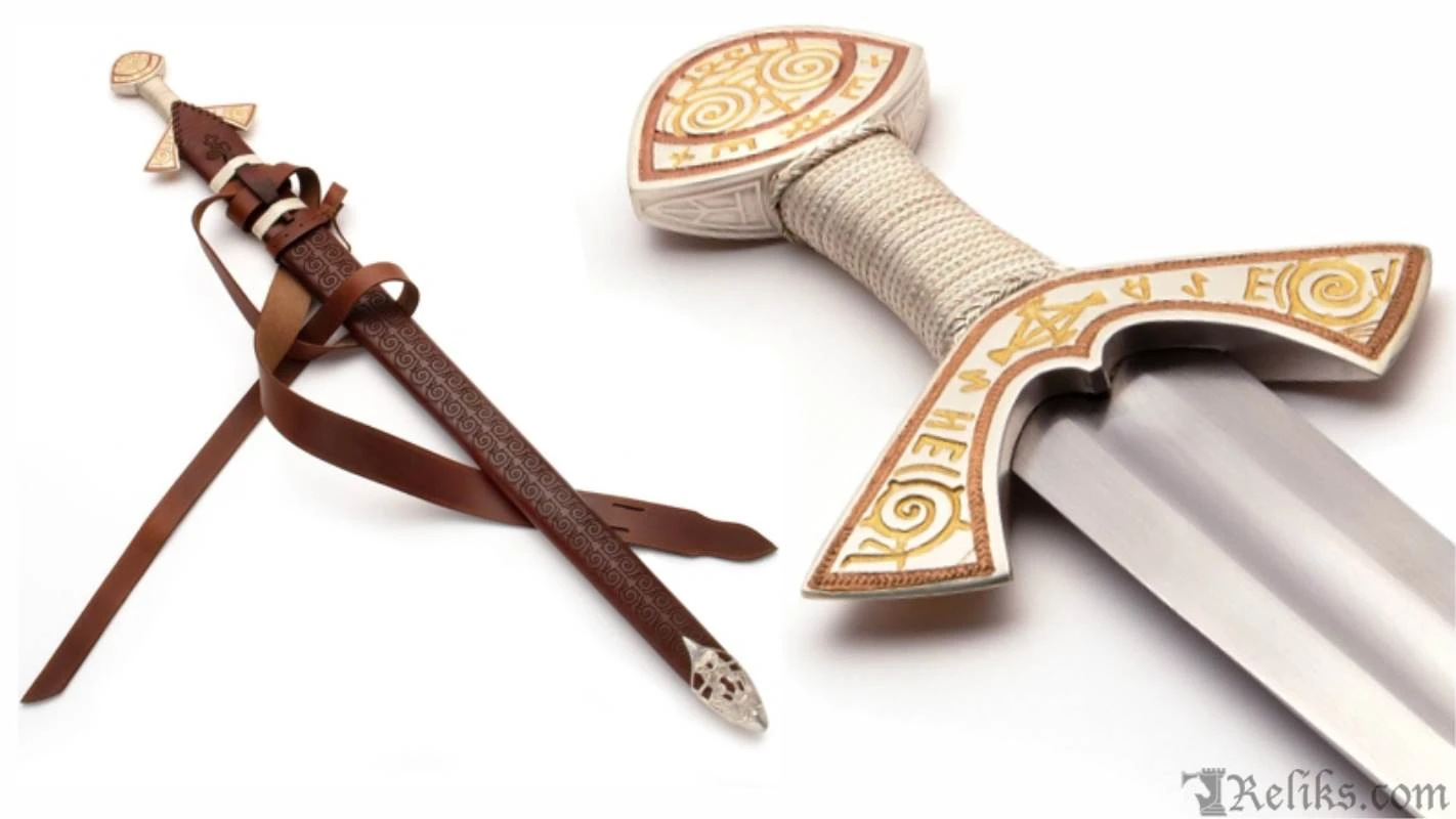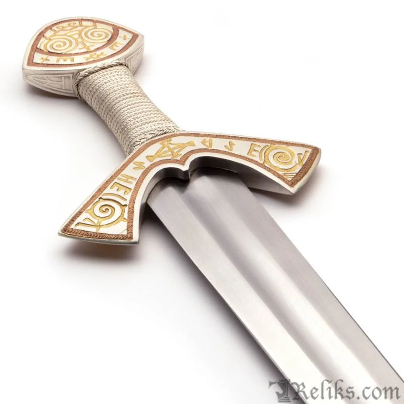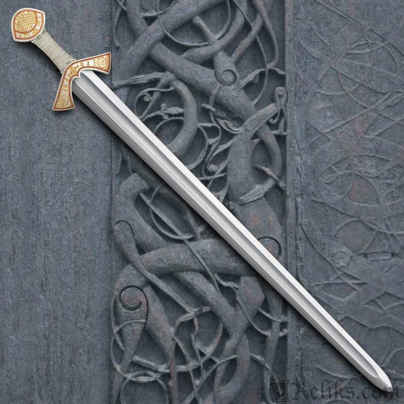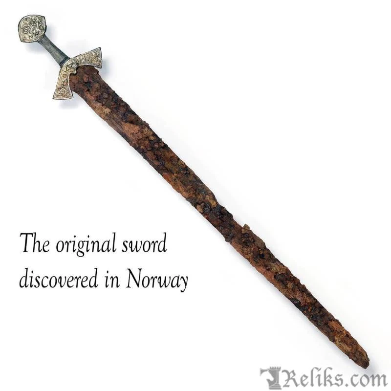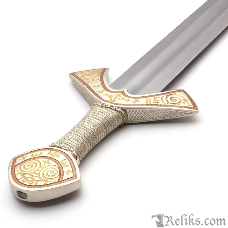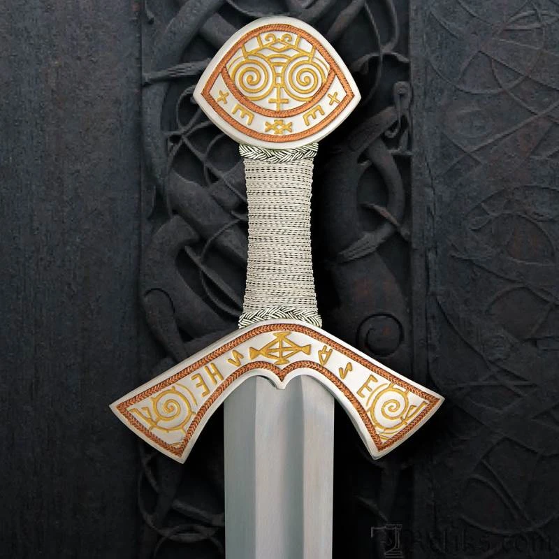 This faithful replica is a fully functioning sword with a carbon steel blade that’s battle capable like the original. The pommel and guard are silver-plated steel, and the markings are reproduced in real gold and copper. We’ve widened the grip for the sake of comfort, but the wire-wrapping is twisted in the same patterns that a prominent Viking hand wielded centuries ago.