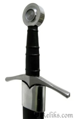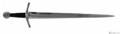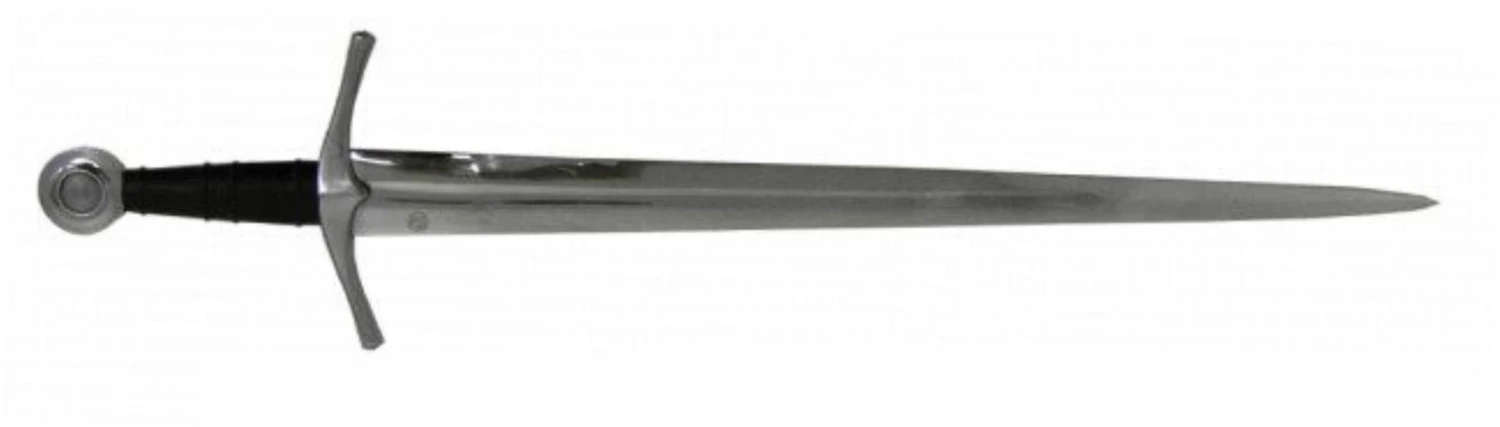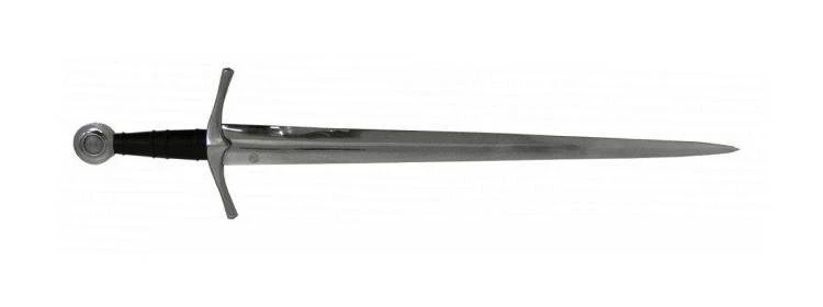 The Medieval Knight sword, or type XIV, is the quintessential sword of the medieval period. Described in Oakeshotts typology as being relatively short, with a strong taper and sharply pointed (E. Oakeshott: “The Sword in the Age of Chivalry” p.51 ) the Medieval Knight sword is a light and well balanced weapon which facilitated a fast and agile fighting style. As full plated armor aggregated into the complex defense of the aristocratic military elite, swords too had to be improve to counter this ever evolving defense. Unlike the sluggish and belated fighting that characterize modern misconceptions of medieval combat, the Medieval Knight sword, or Type XIV, was a well balanced and deadly weapon innate with exceptional handling characteristics. While the deep seated taper delivers assertive thrusts, the impressive cutting abilities made this sword a deadly weapon of choice. The Medieval Knight sword is a beautifully crafted and engineered weapon. Exceptionally designed to deliver both cut and thrust, it is very well balanced, light and responsive. Elegantly crafted from originals at the Royal Armouries and the Wallace Collection, the medieval knight sword reflects the design and taste of the late medieval period. The detailed handle and curved guard indicates the early artistic influences, eventually explored during the Gothic period. Available with Standard or Interlaced Sword Belt Scabbard.