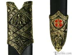 This decorative medieval sword is loaded with detail form the pommel to the guard as well as bronze accented scabbard. This decorative sword measures approx. 42″ overall with a 32 1/2″ stainless steel blade for easy maintenance and keeping your sword looking new while on display. Perfect for adding some medieval flair to your home decor or office.