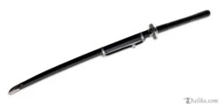 The Miao Dao, the “grain leaf” sabre, receives its name from the early 20th century despite its ancient origin. Its history is a subject of debate among some scholars and sword enthusiasts but all agree about its reemergence in the mid-16th century by General Qi Jiguang who resurrected the sword to combat pirates raiding coastal cities. After the victory over the pirates the Miao Dao remained useful battling enemies of the Ming Empire which led to this famous general’s men to be known as the “invincible Qi army”. Highly coveted by the soldiers the swords didn’t pass along this weapon easily. This beautiful Hanwei Maio Dao is the pinnacle of Chinese sword craftsmanship. This verion features a 31 1/2″ L6 steel blade with a groove on on both sides of the blade to lighten the balance. The ribbed handle is a beautilful black which is echoed by the deep black lacquered scabbard. The gorgiously ornate guard and pommel are stainless steel as well as all the other accutrements. An elegant weapon from a more honorable and duty bound age.