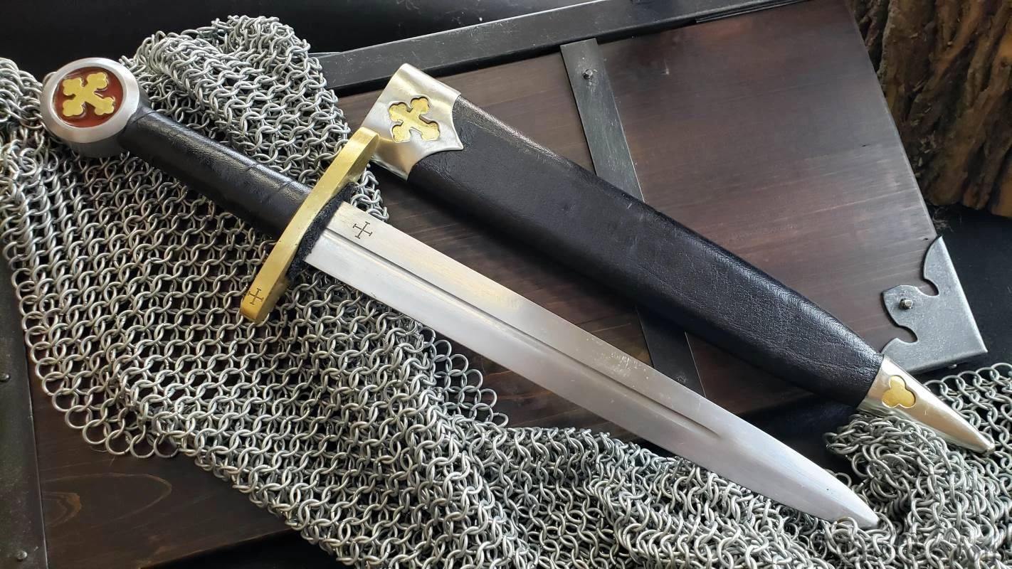 Militia Templi Dagger (Order of Aviz, Templar Dagger) A Templar dagger is typically a double-edged blade that is used for stabbing or thrusting during close combat in battle. It is the Knight’s last line of defense from an attacker making it an essential item. Other uses of the Crusader dagger were for cutting, carving, and eating. Deepeekas replica is based on the Order of Aviz, which was established in 1128 after receiving a grant from Theresa, Countess of Portugal. The dagger comes complete with a scabbard, has a full tang, and is heat treated to a Rockwell of 48-52.