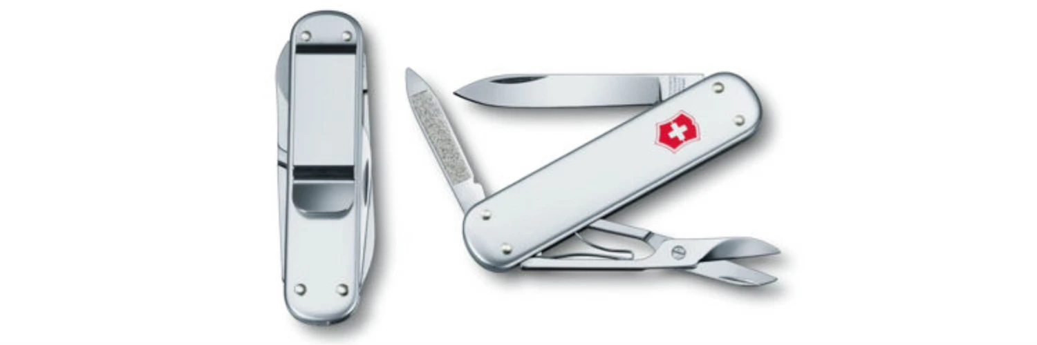 Distinquished and sophisticated, the Victorinox Swiss Army Money clip Pocket Knife perfectly melds form, function and durability. The Victorinox Money Clip features 5 functions and comes with the Swiss Army lifetime warranty. In 1897 the Original Swiss Army Knife was created in the small village of Ibach, Switzerland. Since that time, Victorinox has become well-known in more than 100 countries for precision, quality, functionality and versatility. 3″ closed.