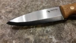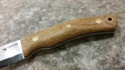This great new knife by Casstrom is built as a multipurpose knife for hunting, bushcraft and general use in the great outdoors. The blade is 3 7/8″ long and made using 3.8mm thick Austrian made O2 high carbon tool steel (Böhler K720) and heat treated to achieve a hardness of 58-60 HRC. The knives are ground with a shaving sharp flat Scandinavian grind and have a satin finish. This steel in combination with the grind makes these knives very strong, yet very easy to sharpen and it takes a great edge. The handle is made from classic oak. There are black liners between the handle scales and steel to enhance durability over time. The wood has been treated with a traditional Scandinavian linseed oil based varnish.The knife comes with a sturdy welted sheath made from 3mm vegetable tanned full-grain leather. The sheath features an extra wide belt loop, a fluid draining hole and a lanyard hole. Made by Casstrom Sweden.