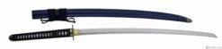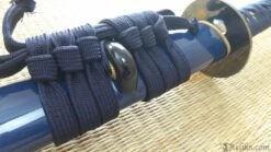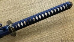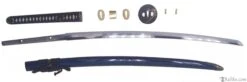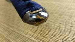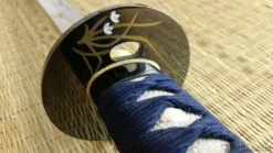 The Orchid Katana is as quick as it is beautiful with a relatively light blade of folded K120C and striking koshirae. The hamon is prominent and the hada shows distinct layers. High quality ray skin (same) is used on the tsuka, and the tsuka-ito and sageo is woven from premium Japanese cotton. The tsuba is of blackened iron, with an Orchid and Butterfly decoration inlaid in silver, brass and copper. The saya is deeply lacquered in blue with buffalo horn koiguchi and kurikata. The fuchi, kashira and kojiri are crafted in bronzed iron with silver and gold detailing. The habaki is of one-piece brass construction. The blade features a medium-length (chu) kissaki.