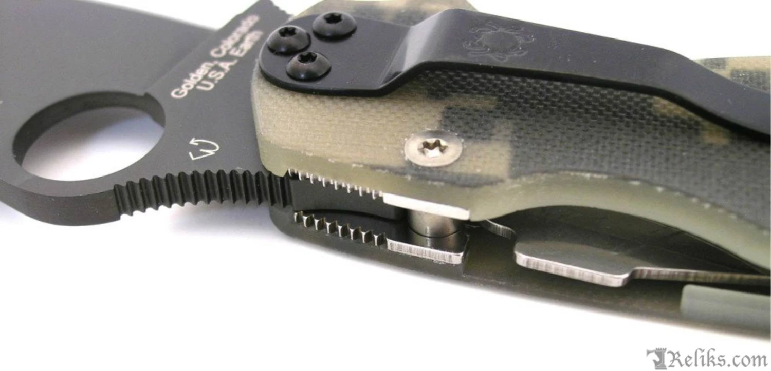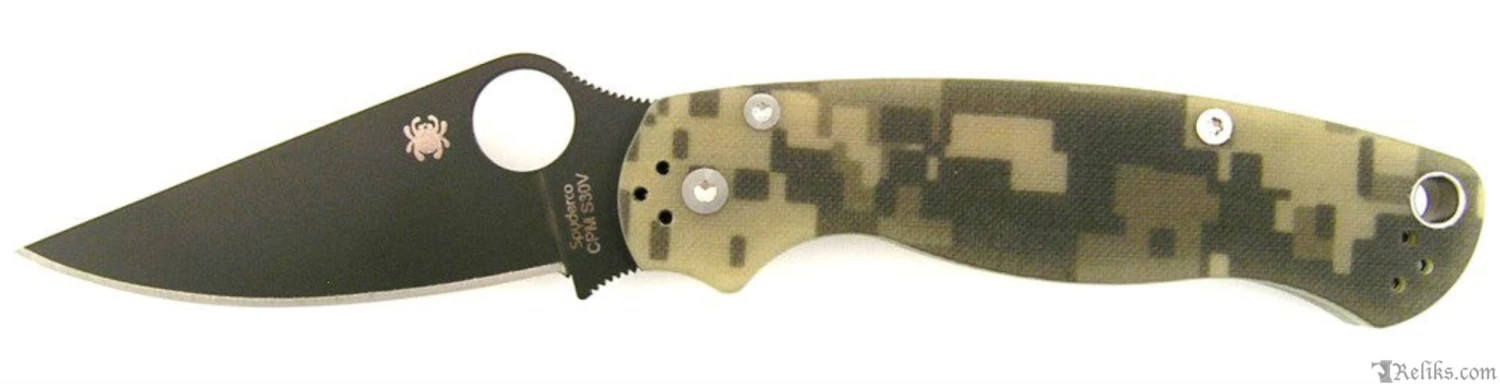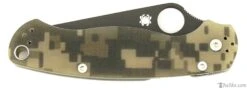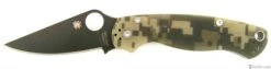 The Spyderco Para-Military2 Digital Camouflage Black Blade G-10 has several changes over the classic version. The G-10 handle is narrowed at the end improving the ergonomics. It features a Compression Lock and an ambidextrous-friendly four way clip which carries tip-up/tip-down, left/right-hand and rests deeper in a pocket.