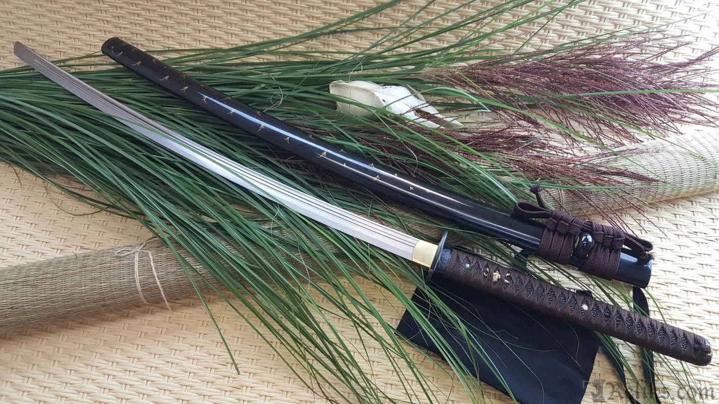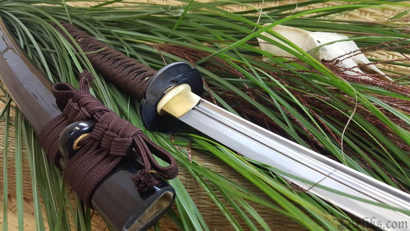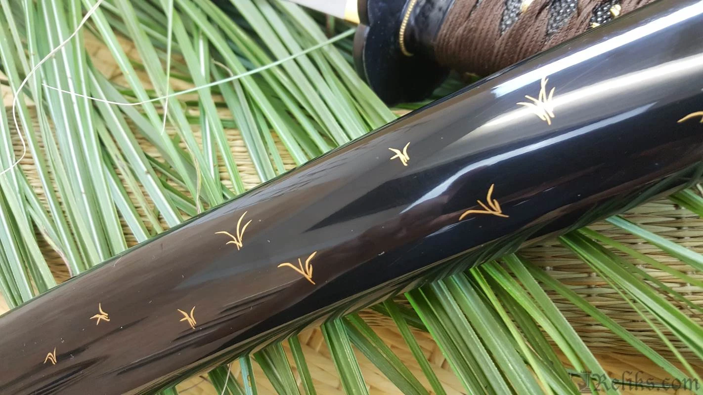 Several years ago we asked Keith Larman of Summerchild Polishing to design a sword exclusively for our customers from the “ground up”. We asked for a historically “authentic” blade design along with mounts that would go beyond the typical “pick a theme” type of mounts that pervade the sword market. Keith is well known for his sword mounts that “tell stories” and we gave him freedom to put together a new sword that would be understated and elegant, but still be more than just a typical sword. The Bugei Exclusive “Peace sword” is the result. Keith began by reviewing the various swords currently available on the market. His goal was to design a blade that would be strong, tough, and beautiful, but also be the type of blade that would appeal to modern practicing martial artists. He decided to use a katana originally made by the famous Hizen Tadayoshi school smiths as the basis for this sword. Hizen blades were (and still are) renouned for their beauty and quality of construction. The Peace sword is a robust shinogi zukuri katana with an extended chu kissaki. The blade is moderate in thickness and somewhat wide compared to many designs. However, like the original Tadayoshi school sword the Peace sword is based on, the Peace sword has a shallow bo-hi (full sized groove) and a soe-bi (fine groove) running below the shinogi (ridge line). This allows the sword to remain robust and durable with a good cross-sectional thickness all while helping keep the overall weight of the sword down. The sword moves easily in the hands, is extremely sharp, and is still of a robust design for cutting practice. Keith also asked Hanwei to have the smiths making the sword fold the steel billet an extra time before finishing the blade. Hizen blades were renouned for their very fine hada and Keith wanted to pay tribute to their work. We also asked for a sedate suguha hamon (flat hamon) which was one of the styles of the Hizen smiths. The hamon is deep with vivid nioi and on close inspection you can see the interaction of the suguha with the underlying finely folded steel. It makes for a more subtle but very elegant look. It also gives the sword a serene appearance. Deadly in appearance, but calm and serene. It appears simple, but the closer you look, the more you see. Which are of course attributes that would appeal to the samurai of old. Calm focus. Peace. Understated elegance.