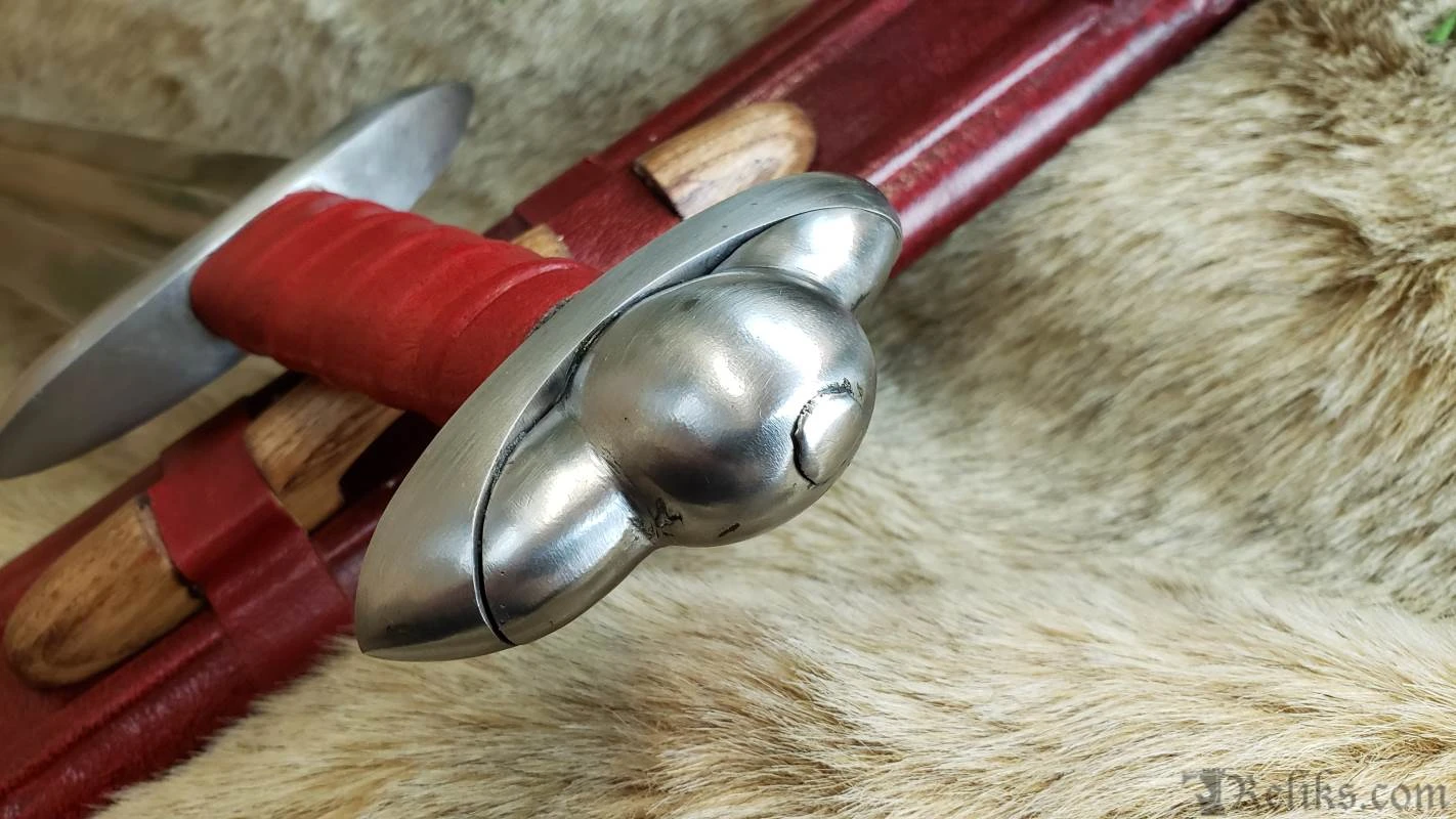 The Petersen Type L sword boasts a straight blade adorned with a subtly raised midrib, a feature that not only enhances its aesthetic appeal but also augments its functionality. The blade’s edges gracefully slope, a design element that not only makes it a sight to behold but also underscores its practicality on the battlefield. Moving towards the hilt, the pommel features a distinctive curved base-element crowned with three lobes.