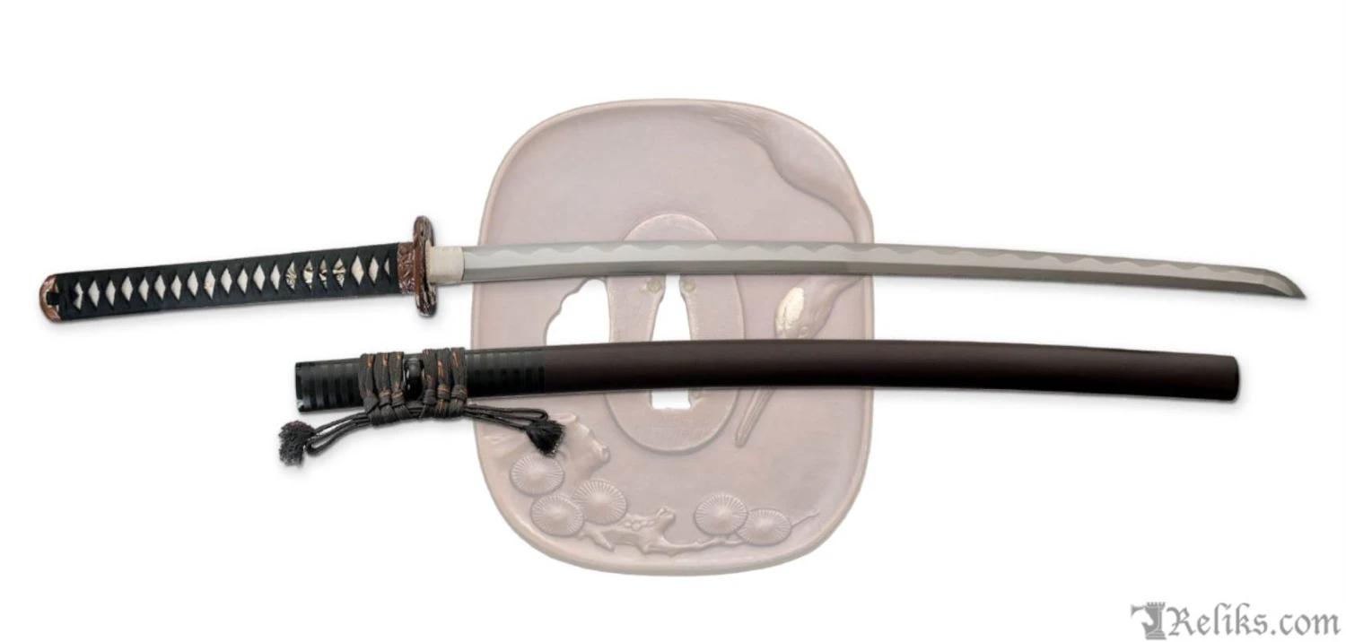 The artisans of Dragon King offer us another exquisite piece of revered symbolism from Japanese culture with the Pine Crane Daisho Set. The red-crown crane holds profound respect and power in the Japanese mythos believed to live for a thousand years. As a symbol of authority, a Japanese idiom says, “one word from the crane” referring to the final word that isnt challenged. Marrying the symbolism of the pine tree, another icon of power, longevity and wisdom, Shinto beliefs state that the gods of heaven reside in the ancient pines. Often used in wedding attire, the red-crown crane mates for life which make sense to pair this theme with a matching wakizashi.