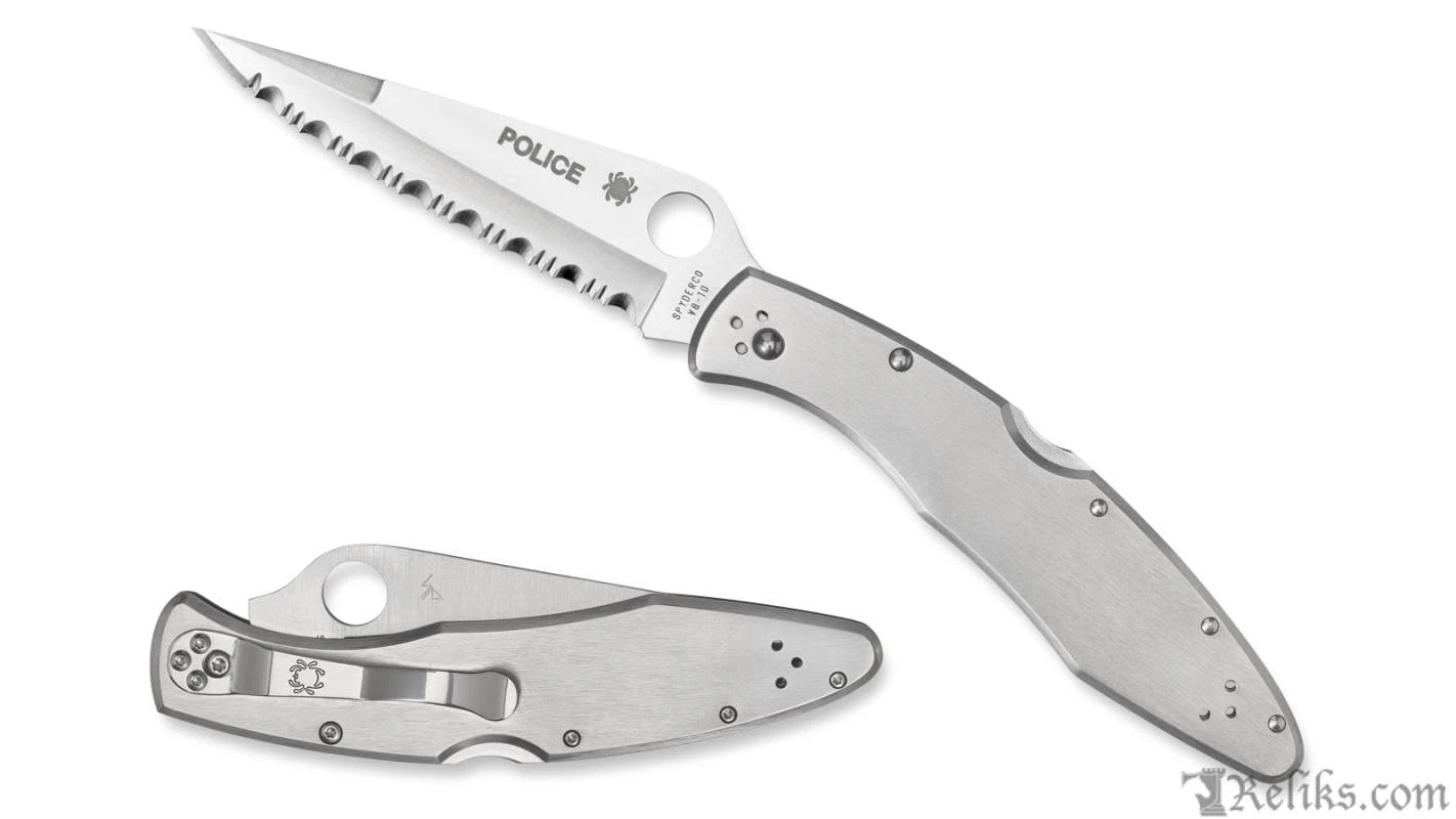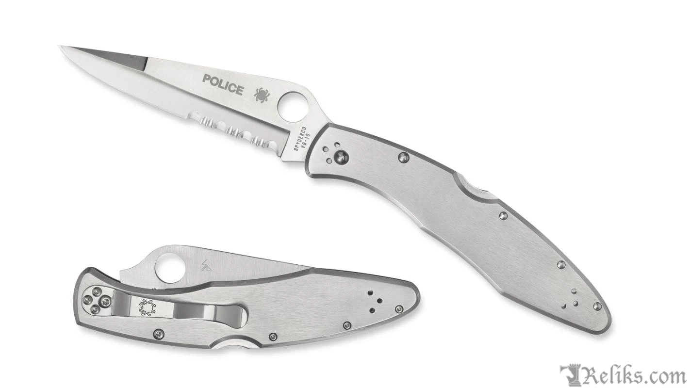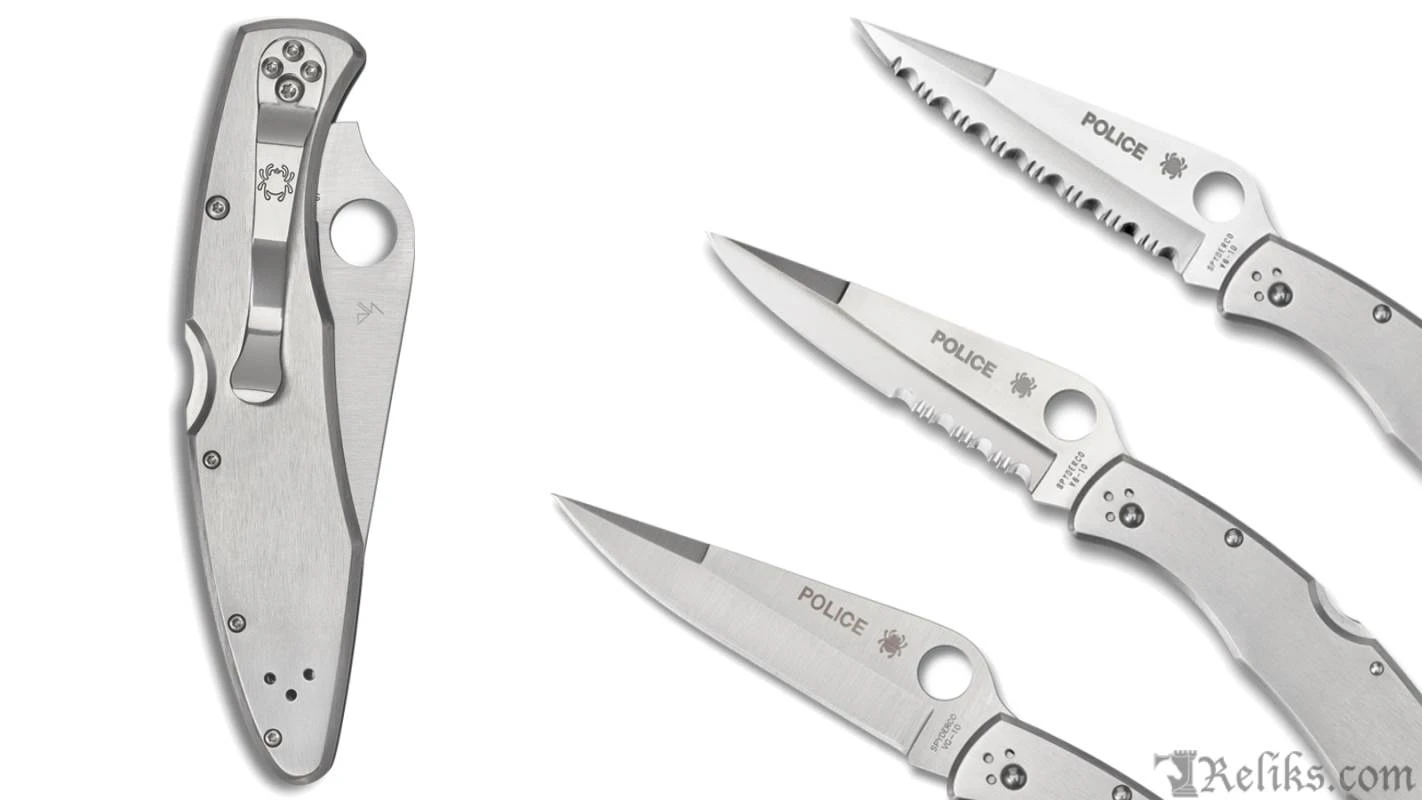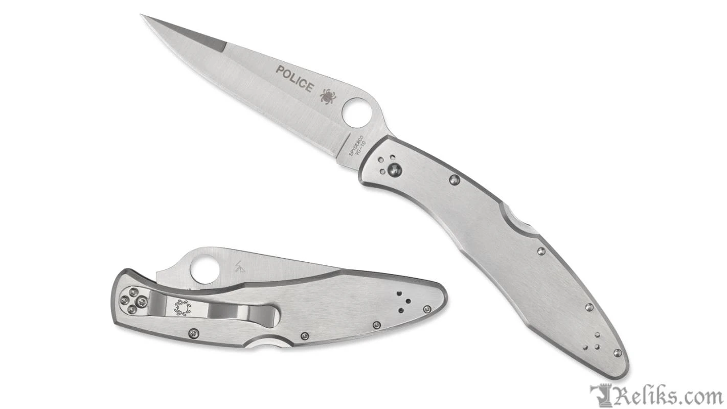 event the knife needs to be serviced, it also allows it to be disassembled and reassembled easily. Were very excited to introduce the latest evolution of this truly iconic design. Available with a PlainEdge, SpyderEdge, or CombinationEdge, the Police Models blade also includes our Trademark Round Hole for swift, reliable, one-handed opening. A four-position hourglass clip completes the package, supporting tip-up or tip-down carry on both sides of the body and making the carry, deployment, and operation of this remarkable knife completely ambidextrous.
