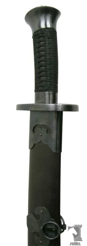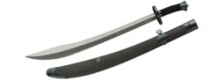 The Practical Gongfu Broadsword sword is a further extension of the “Practical” Series. Featuring a distal-tapered high carbon steel blade, wrapped grip and steel fittings, the saber is a traditional ox-tail design. The textured wooden scabbard is designed with a slotted opening, which makes both for easy sheathing and graceful lines. In line with other swords in the “Practical” series, the Practical Gongfu Broadsword is very affordable.