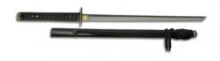 The Practical Shinobi Ninjato, whose construction patterns closely that of the Practical Katana, is a wonderful addition for those studying the Way of the Ninja. The blade is hand-forged from a high-carbon steel billet and is differentially hardened using a traditional claying method. All the fittings (koshirae) are finished in antiqued black iron. The ornate tsuba displays the kuji-kiri (energy-channeling hand positions) employed by the mystical ninja. The tsuka is wrapped in a synthetic black ray skin (same) and the tsuka-ito is in durable synthetic black leather. The saya has flat black finish with demon-head bindings for the black Japanese cotton sageo and an intricate kojiri. A sword no practitioner of Ninjutsu should be without. Overall length of 34 1/2′ with a 22 3/4″ blade. 1 lb. 14 oz.