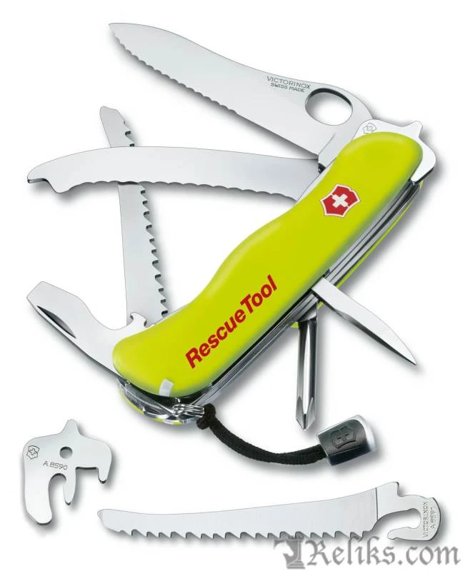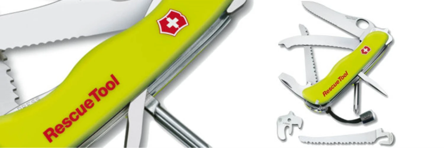 The Victorinox Rescue Tool was developed in collaboration with fire and rescue workers to create a highly functional tool for rescue operations. The one-hand blade can be opened quickly and easily, even while wearing gloves, and is suitable for right or left handed users. In addition, the Rescue Tool contains a seat belt cutter and removable window breaker and disc saw. Named Knife of the Year 2007 by the IWA. The Victorinox Rescue Tool features 15 functions and comes with a lifetime warranty. 4 3/8″ closed.