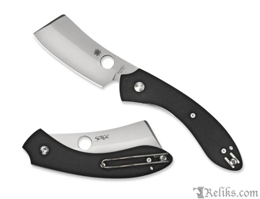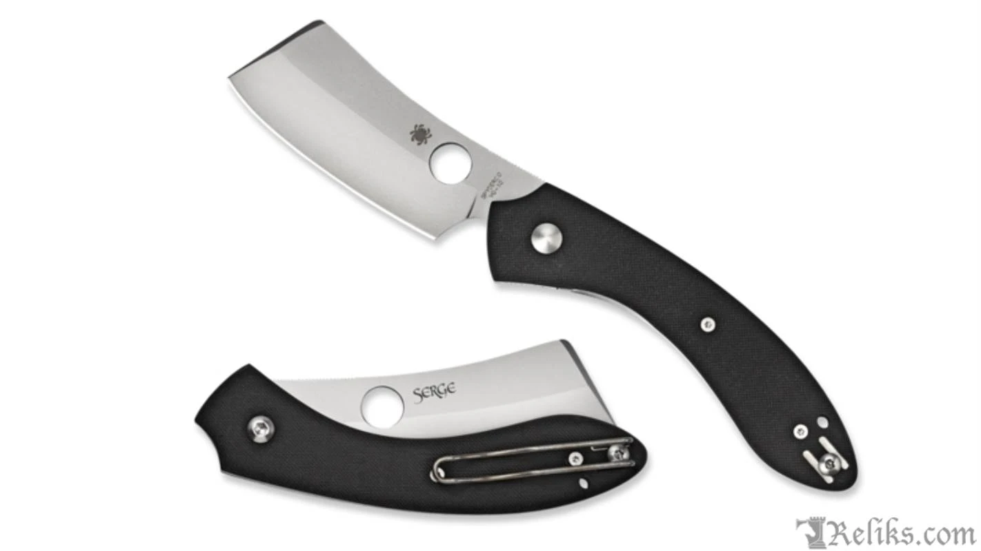Designed by custom knifemaker Serge Panchenko, the Roc combines an unusual cleaver-style blade with a gracefully curved handle and a sturdy LinerLock mechanism to create a uniquely functional cutting tool that challenges convention. Precision ground from VG-10 stainless steel, the Rocs blunt-tipped, PlainEdge blade features a low-profile matte gray finish and a saber grind that balances high-performance edge geometry with the strength and heft of a full-thickness spine. A long section of jimping (textured grooves) on the blades spine provides a solid purchase for the users thumb, and an easily accessible Trademark Round Hole ensures swift, positive one-handed opening with either hand. The Rocs handle combines full skeletonized stainless steel liners with textured G-10 scales and an open-backed construction that reduces weight and simplifies cleaning and maintenance. Its thick liners also form the foundation of the knifes sturdy LinerLock mechanism, which includes a Bob Terzuola-inspired concave lock ramp on the blades tang. To ensure convenient carry and immediate access, the Roc features a reversible deep-pocket wire clip attached to the butt end of the handle to offer left or right-side tip-up carry.