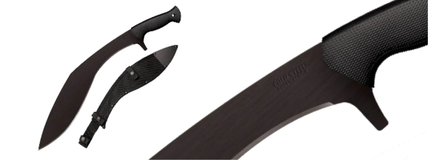 Its hard to find a more versatile knife than a Kukri. A stalwart ally in a tight spot and an indispensable survival tool, a good Kukri is truly apocalypse proof! Cold Steel’s Royal Kukri Machete presents the blades keen point at a new, non-traditional angle, keeping the cutting power that made the Kukri the stuff of legend, but increasing its thrusting and piercing power. The handle, with its integral guard keeps the users precious digits safe from harm while improving the balance and heft of the knife. Proven to be an outstanding multi-functional bush knife, the Royal Kukri Machete is capable of the toughest bushcraft chores. Its sharpened 1055 Carbon Steel blade (with rust resistant baked on matte black coating) is equally at home clearing brush and undergrowth or dispatching wounded game, it also provides the comfort of a dependable last resort self-defense option.
