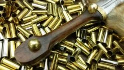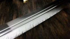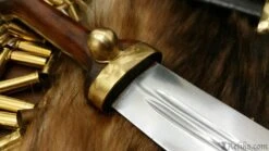 The Russian Kindjal is a military issue version which served the Russian armed forces well into the mid-20th century. This curved, double-edge blade was perfect as a close combat weapon. It originated in the Georgian Republic of Russia, but was best known as a Cossack weapon. The blade measuring 17 1/4″ long is hand forged from a high carbon steel billet at 1 3/8″ wide. The full slab tang is equip with real wood scales making this impressive short sword or long dagger measure nearly 2 feet in length. Weighing in at only 1 lb. 6 oz. made this kindjal a very easy to wield, effective piece of weaponry. Made by Windlass Steelcrafts this piece also Include a scabbard.